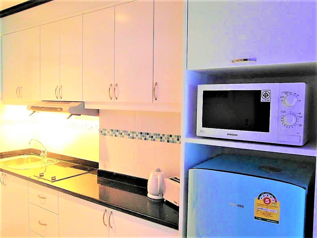 This is a lovely fully furnished ninth floor studio condo for rent View Talay 2 for sale or available to rent - with a fantastic sea view! The condo consists of an open plan living/kitchen/sleeping area, a bathroom and a balcony.
