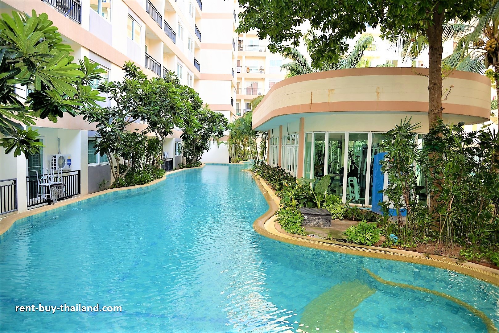 Park Lane Jomtien Resort The complex has some fantastic facilities, including a huge communal 1,600 sq m lagoon swimming pool with a central island that houses a restaurant, a fitness center, tropical garden, shop, lobby, concierge, laundry service, parking, CCTV, 24-hour security and internet. The condominium is just 600 meters from Jomtien Beach and you can find a wealth of shops, bars and restaurants in the vicinity.
