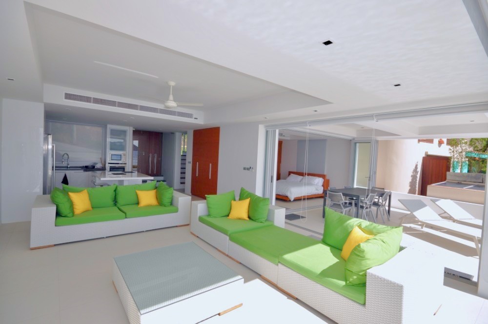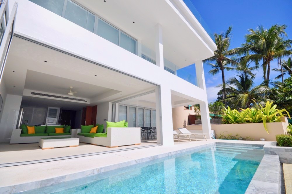 The villa comprises three bedrooms, three bathrooms, open plan kitchen and living area and under cover al fresco dining area. There is a marble salt water swimming pool at the beachside and a covered, open air roof top terrace.