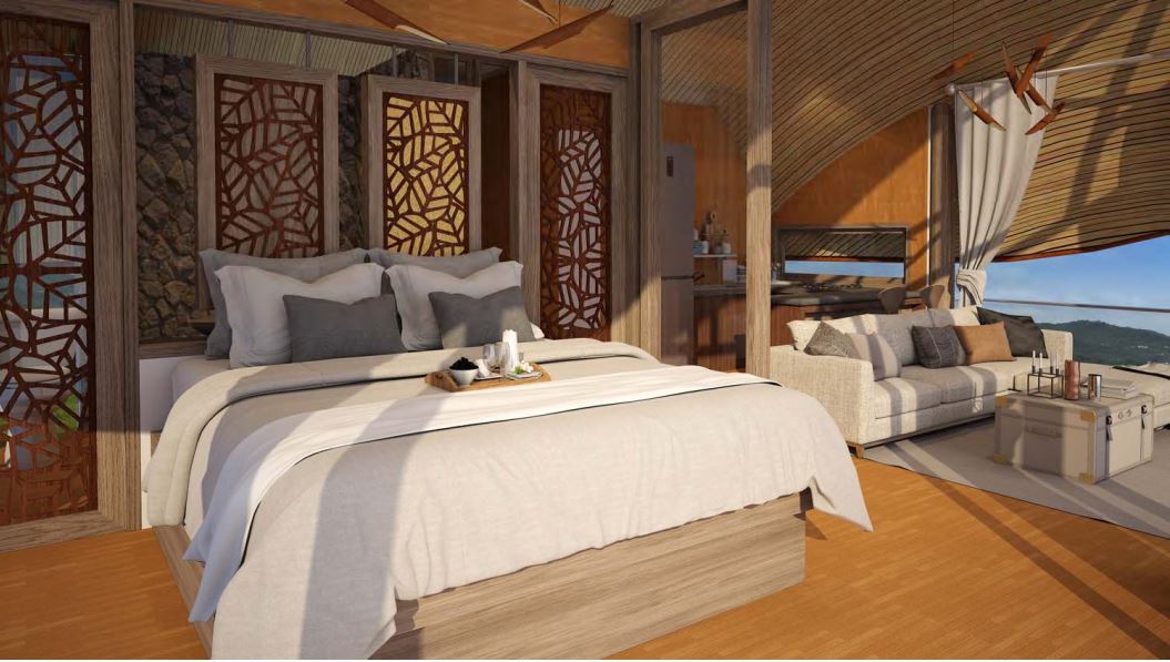 The private, open-air jacuzzi or pool is surrounded by magnificent nature and offers the chance to truly unwind and relax. Imagine enjoying a glass of champagne in your private jacuzzi or pool on your balcony as the sun starts to fade across the bay… a tropical dream this inviting can become a reality if you purchase one of the unique cottages on the grounds.