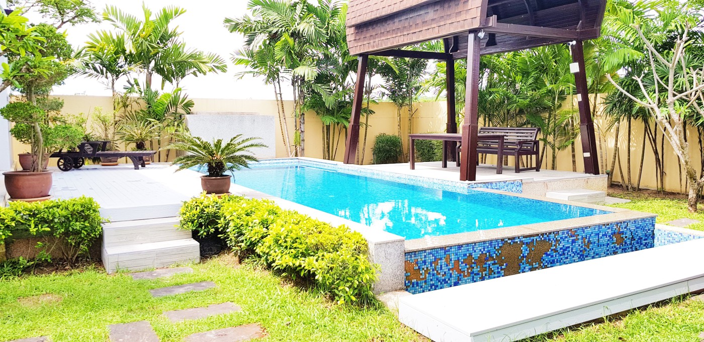 A luxurious duplex Nagawari Villa comes with 1 master bedroom and 2 decent size bedrooms with beautiful set-up bathrooms attached, a dining, a kitchen, and a living space in the main hallway with an open-ended view of the private swimming pool. Very classy themed and modernly furnished. It also comes with 2 parking spaces and an electronic front sh...