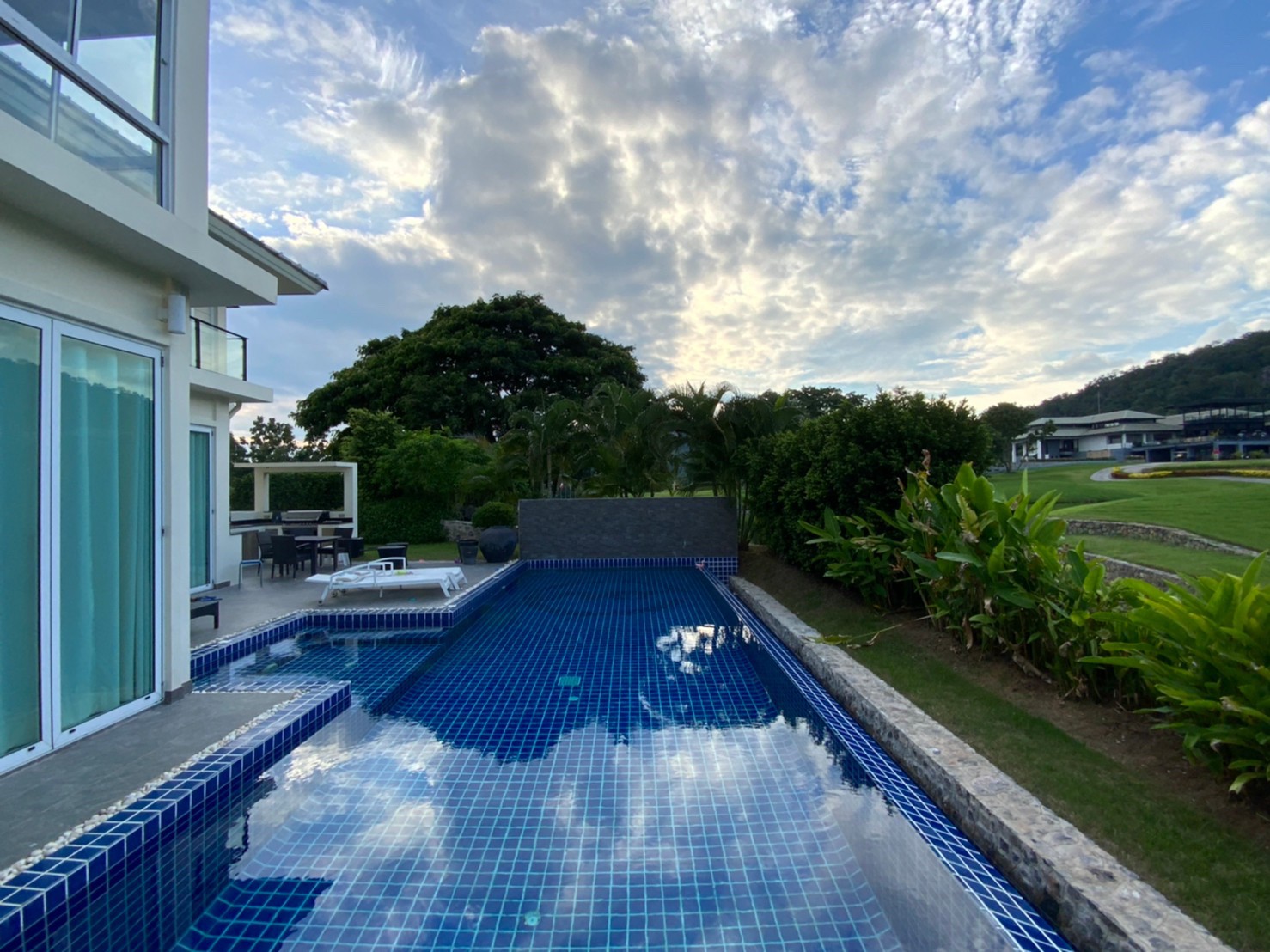 It’s villa unit number 1 with superb view in front of hole 9 & 18 green in Black Mountain Golf Huahin world Golf course. I extended the Swimming pool n also have two big hall upstairs so u can turn into entertainment room n relax corner. Bank valuation 30 millions baits and now I’m selling for 28 millions baht. Come view the villa cos seeing is believing.