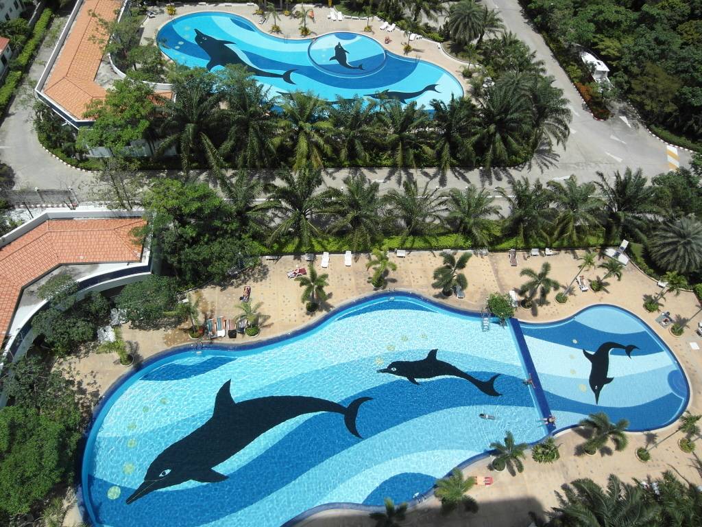 This studio for sale Jomtien also benefits from tiled flooring throughout, as well as an impressive feature ceilings with concealed dimmer lighting in the living area and bedroom. There are also curtains, down-lighting, air conditioning and ceiling fans throughout.