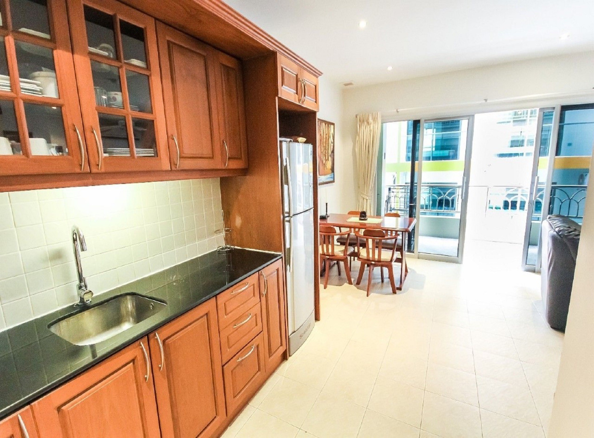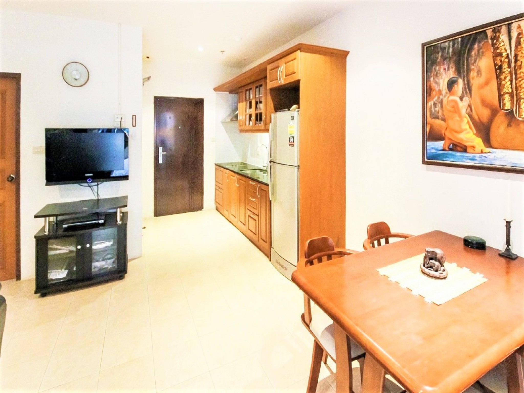 The apartment also benefits tiled flooring, curtains, air conditioning and down-lighting throughout great bargain on Pattaya real estate for sale.