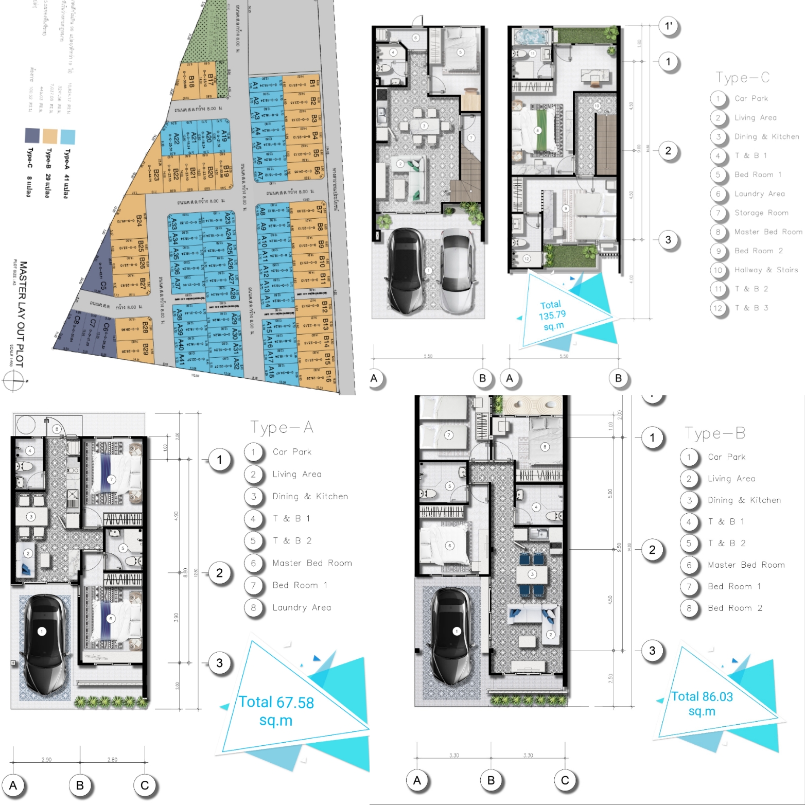 Type B 86.03 sqm (3 bedroom, 1 living room, 2 toilet, 1 parking)