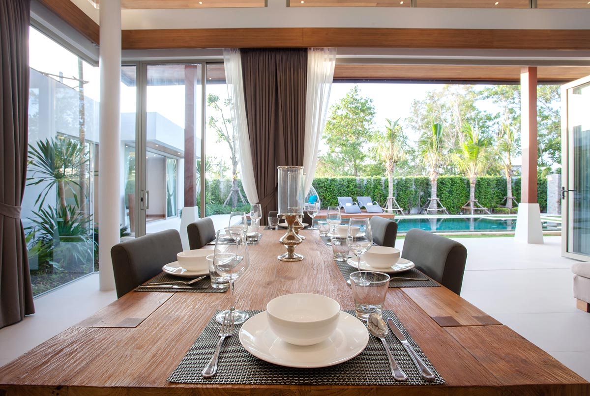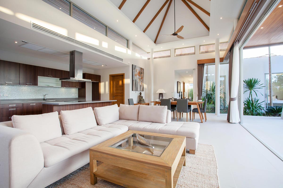 villas, while the concertina glass doors and transom windows above the doors add light and radiance to