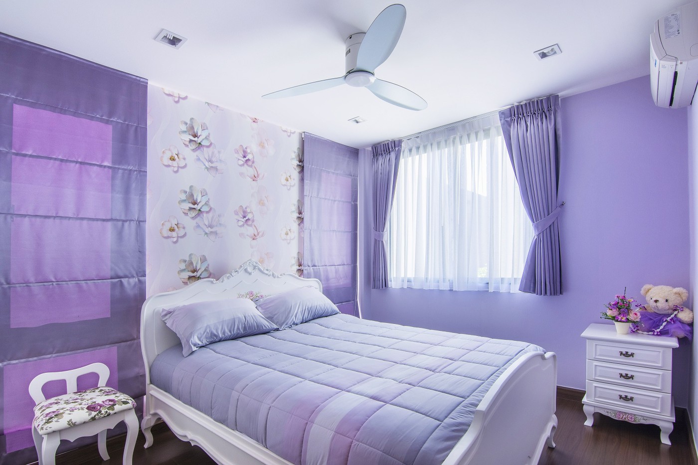 fans, car parking for two cars, backyard garden.