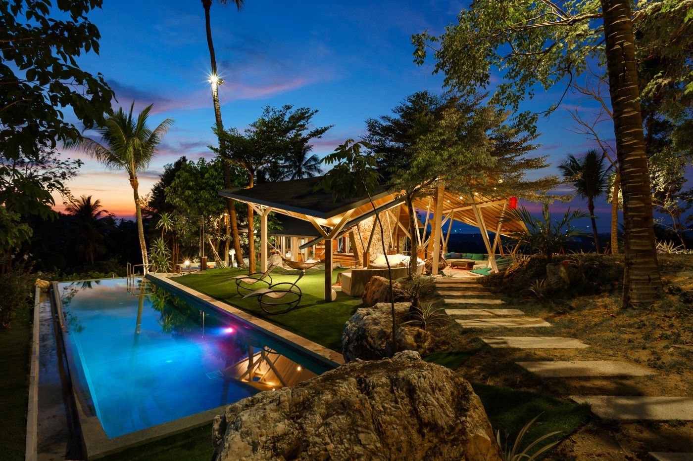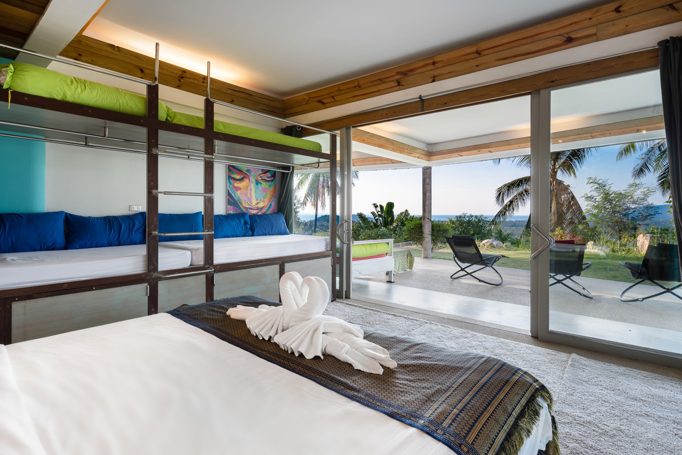 The top floor enjoys breath-taking 360-degree panoramic views of the south west Samui virgin coasts and