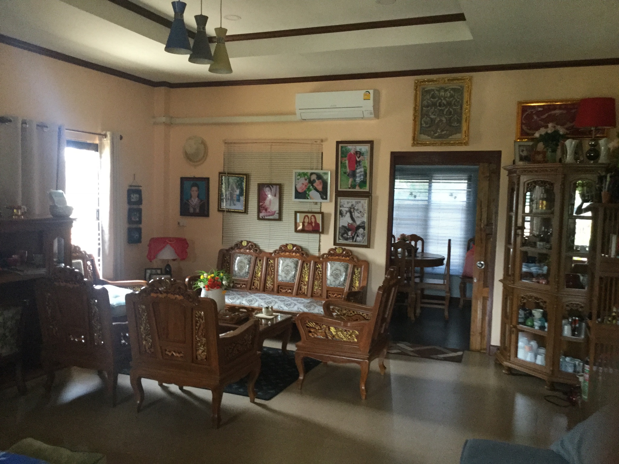 Modern house built 2019 in beautiful location 4 kms from Wang Thong shops, market, banks , 3 kms from local hospital. House consists of large living room, separate kitchen with dining area and large bedroom which can divide into two bedrooms, two bathrooms, placed and n 3000 sqm land with large pond and small orchard of appx 100 fruit trees
