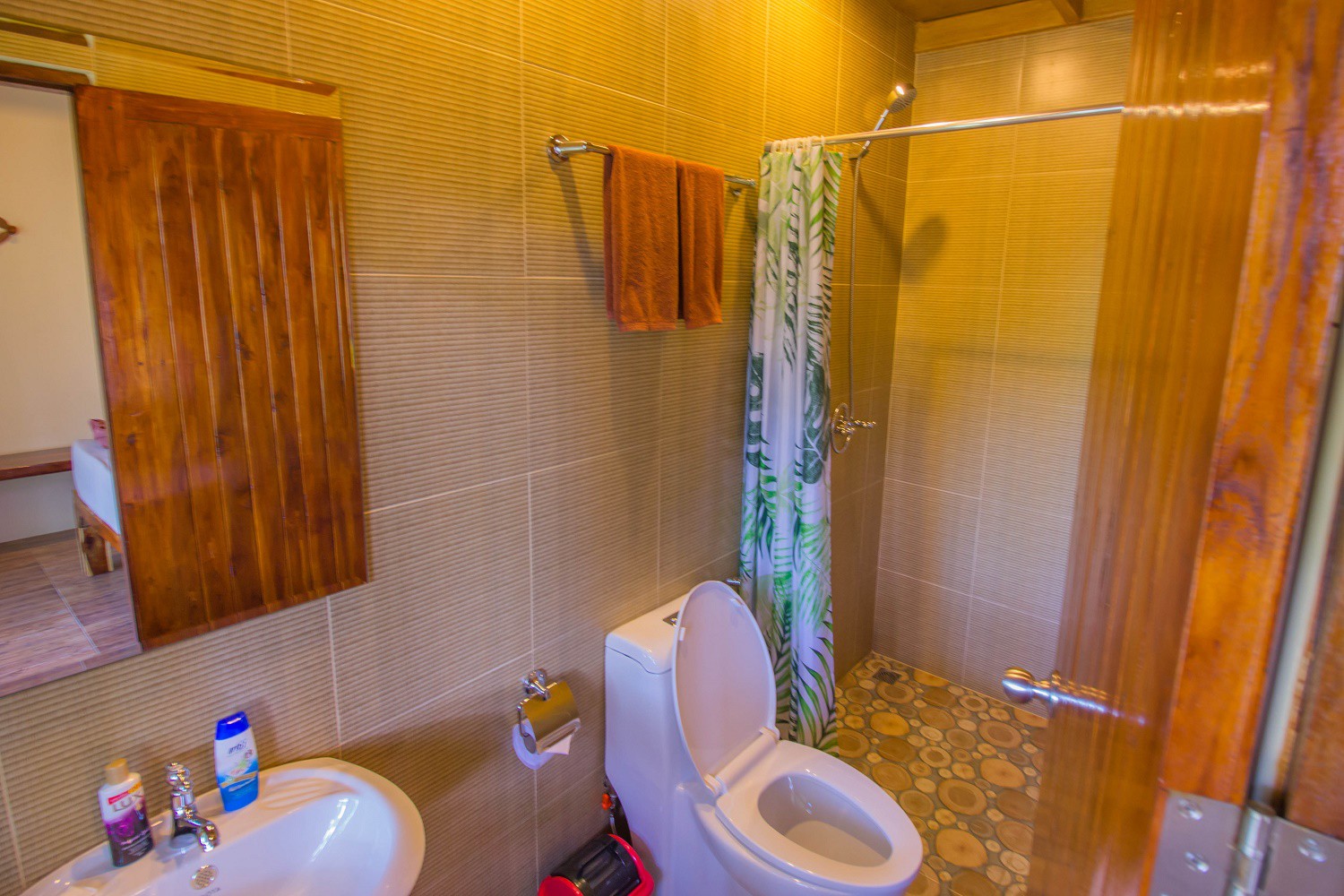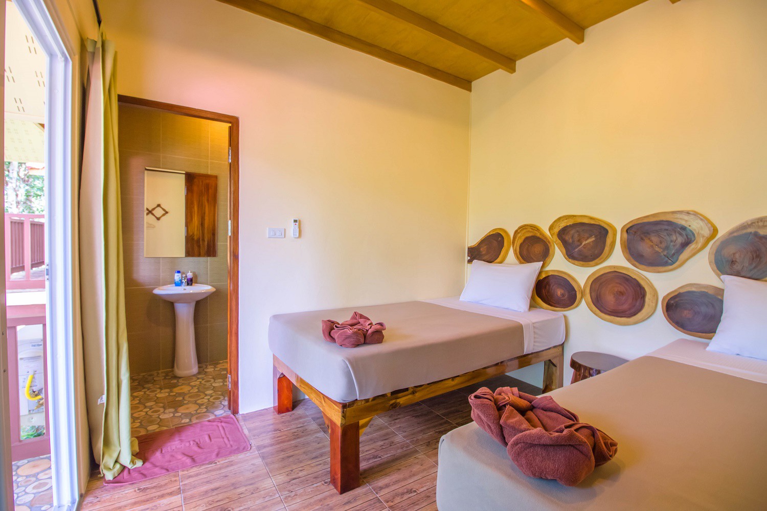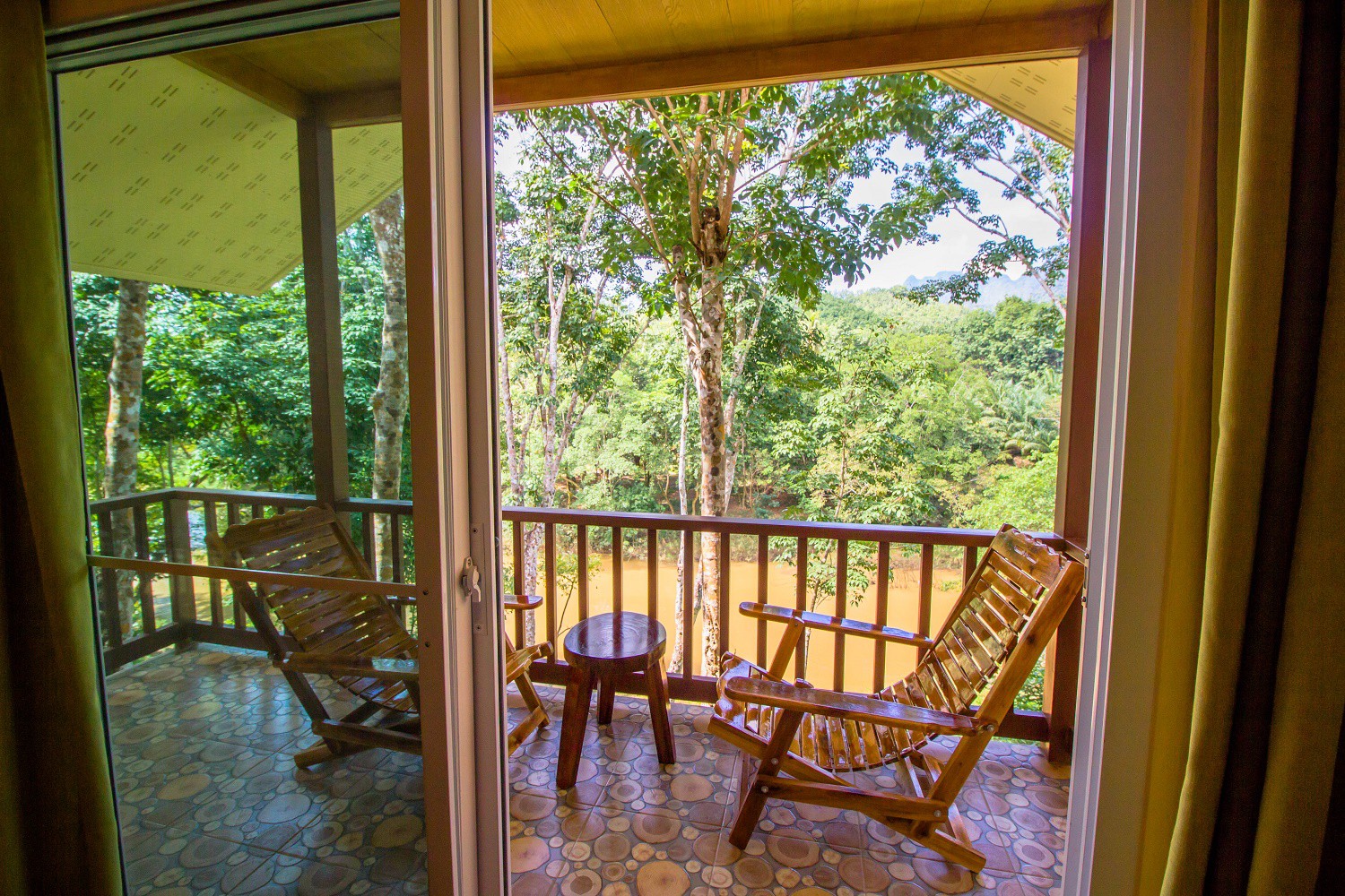 river, mountains and jungle. Decor and all furniture are made of natural wood, panoramic plastic