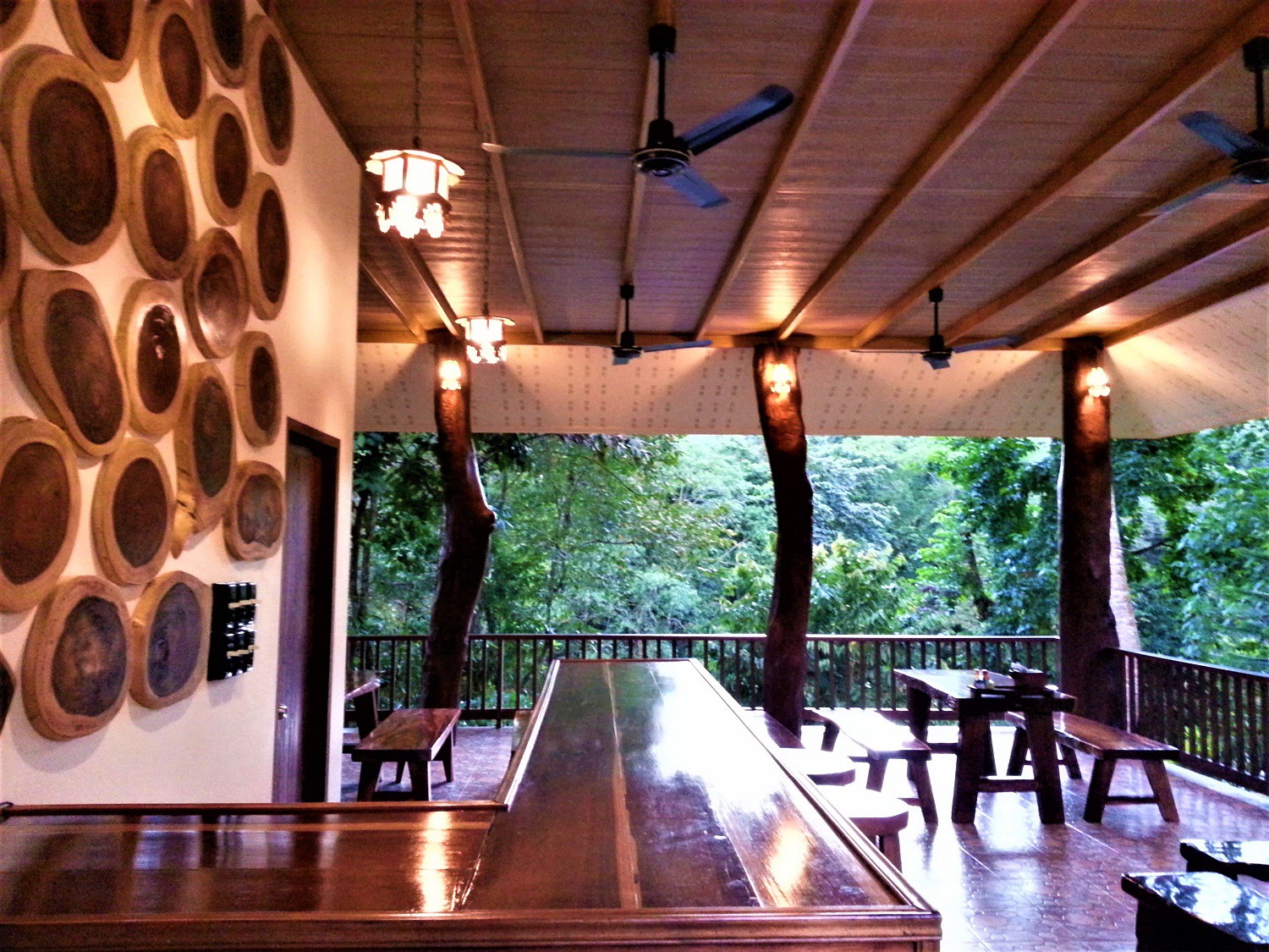 Located on the banks of the river and overlooking the river. The restaurant has 5 large mahogany