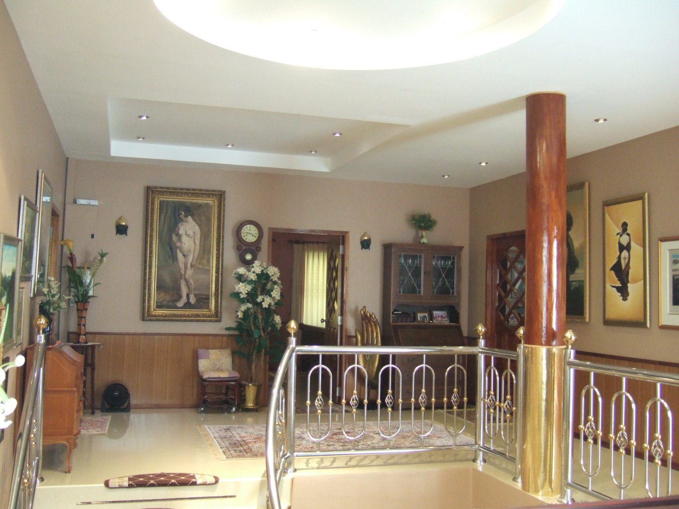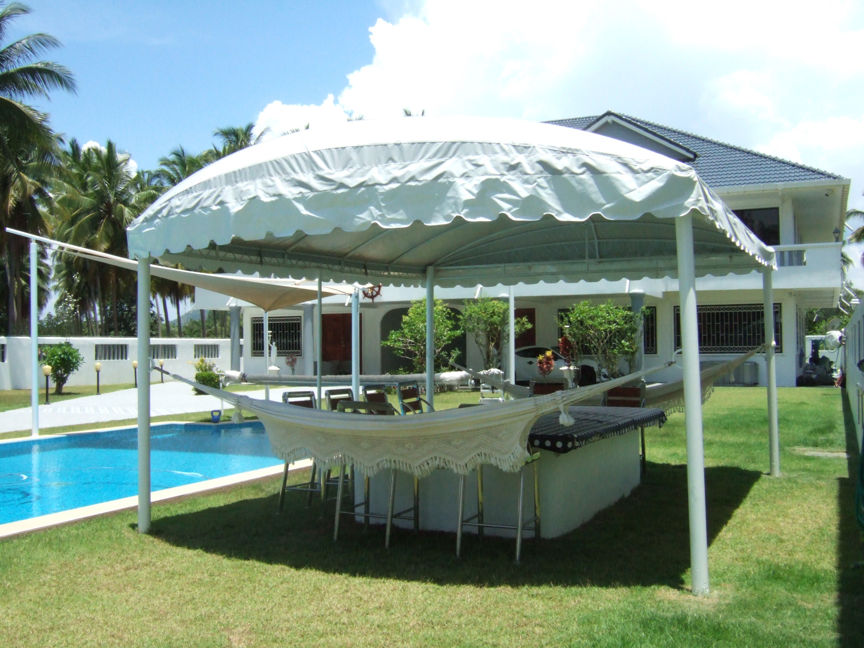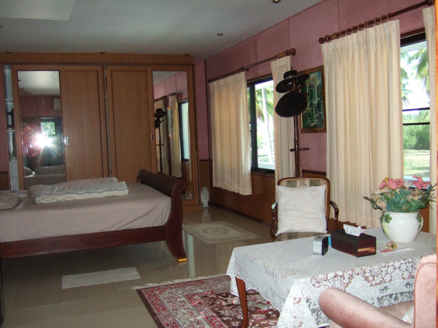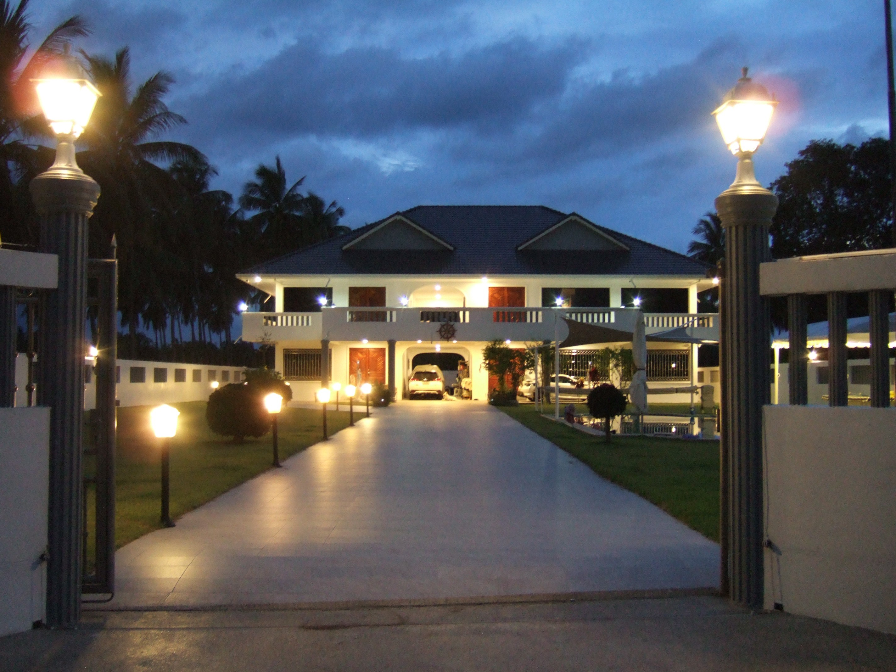 people ,and the area is coverd with a beautiful canvas in case of bad weather . The house connsist of 5 bedrooms size:35/28/24/24/21 m2 .And 5 bathrooms size: 16/16/12/12/5 m2 with 3 bath tubs. There is 2 living room size: 110/60 m2. And 2 kitchens size:24/16 m2. And 2 store rooms size: 18/3 m2. On 1 st. floor a large terasse of 70 m2. All doors 28 in solid teac. -25 oil paintings on canvas.A lot of electro hand tools ,American antique furniture 1890 in solid cherry wood,a beautiful Schimel Piano in polished mahogny. A rider lawn cutter ,and 2 hand held chargeable battery trimmers. And a cargo trailer for cars. On the ground floor between the two parts is a covered parking for 3 cars. The innside useabelaeria is 588 m2. The total aerea with terasse is 876 m2. NB ! We speak Thai-English- French- German-Scandinavian.