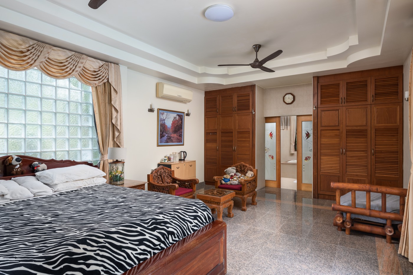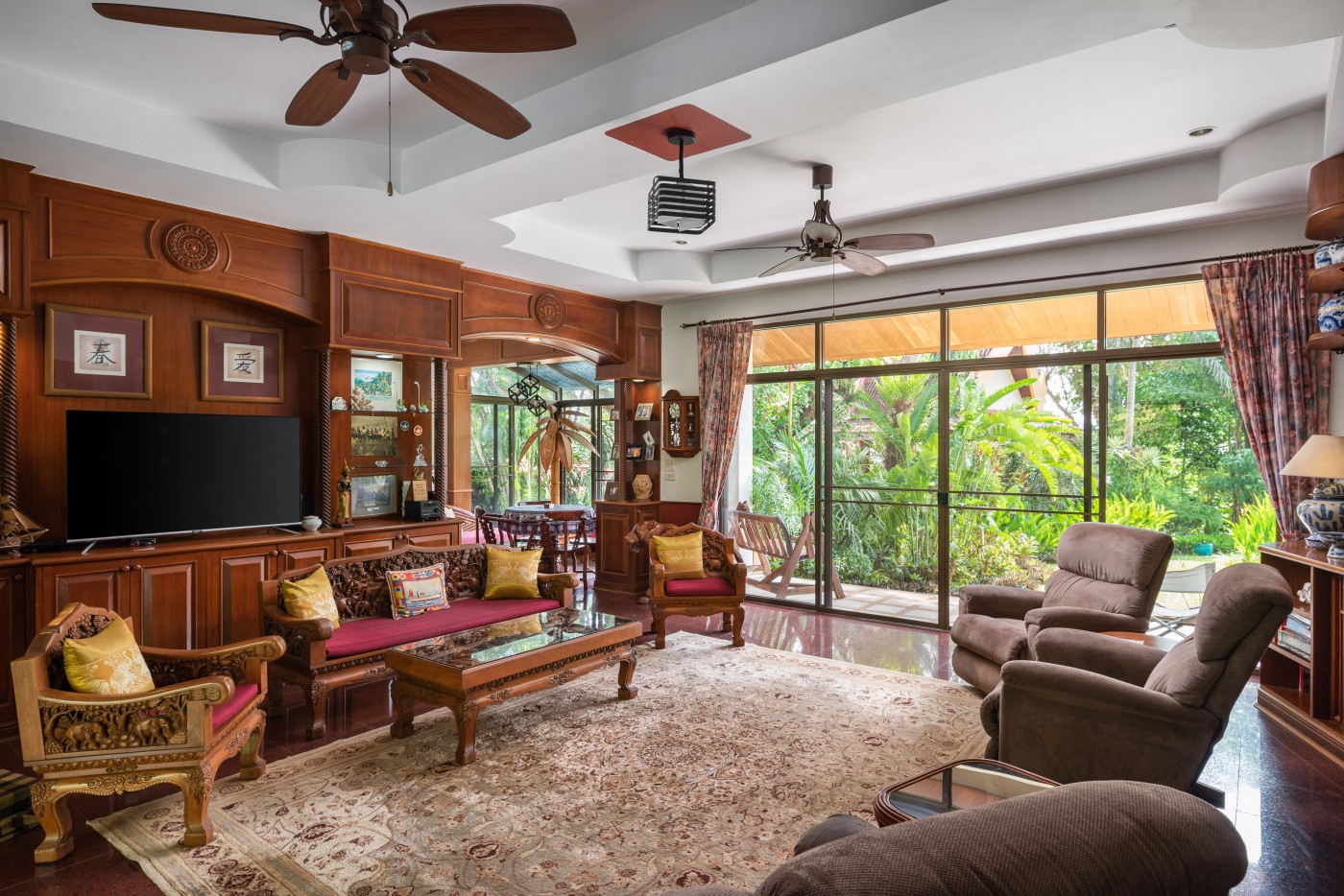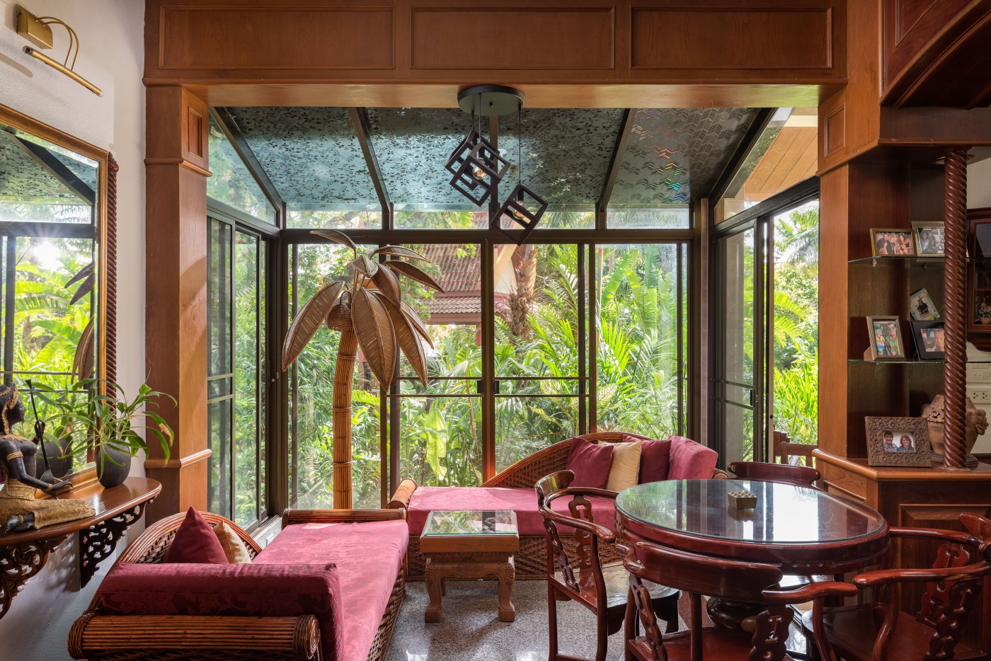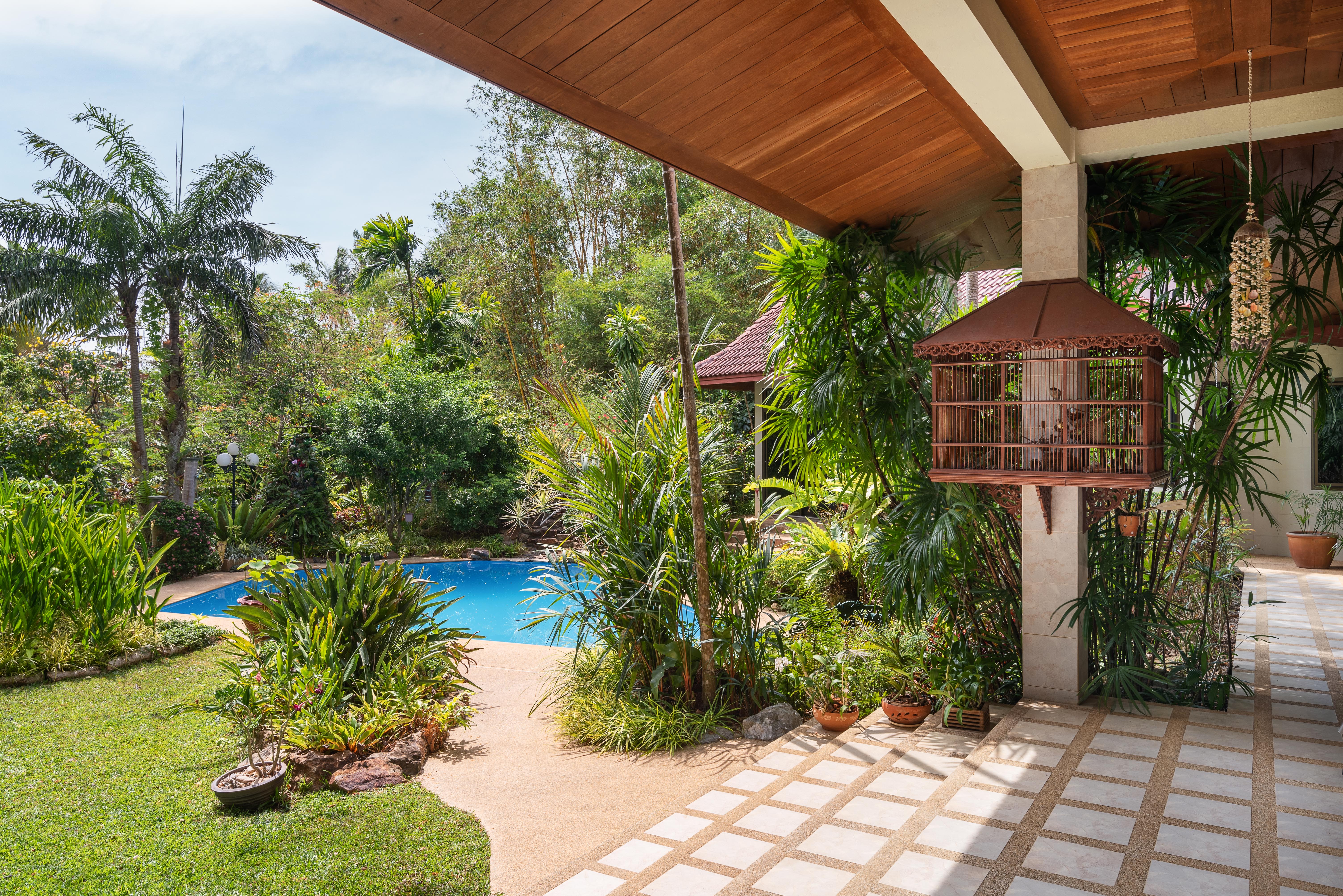 bath sprawling Thai style villa comprises of 3 sections, built around the pool. Large overhanging eaves and