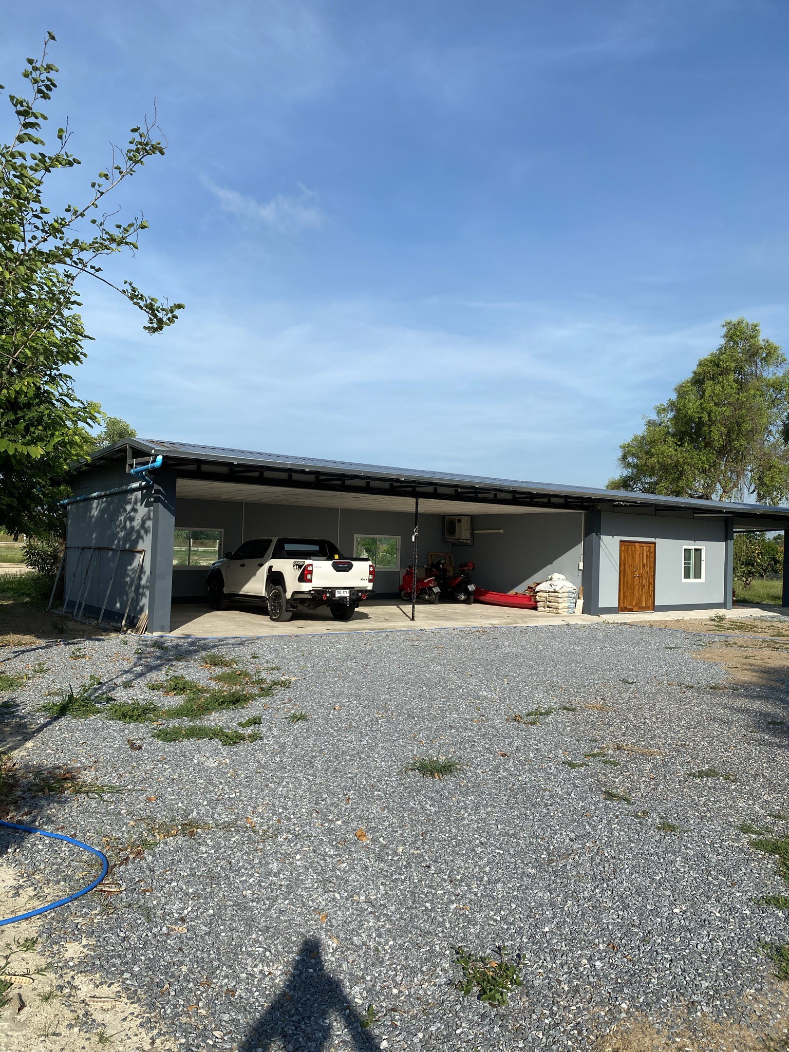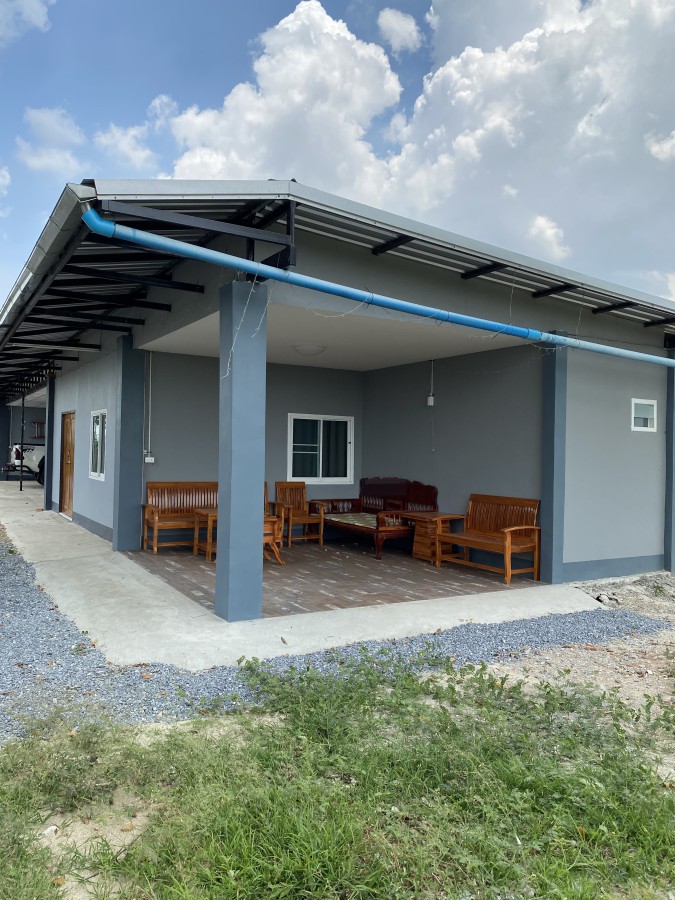 5 Rai with 2 homes fully fenced land leveled to road 1098. 2 slider gates to access road 1098. Fishing pond stocked. One home new with bath attached to car shop. Traditional home has 3 bedroom 2 bath one outside. Trees fruit garden flowers. Great place for quite private home or have business.