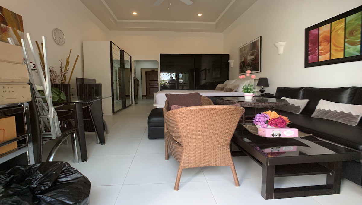 This Studio Unit is 50 Sq.m and comes fully furnished. The living zone has a nice sofa set, dining