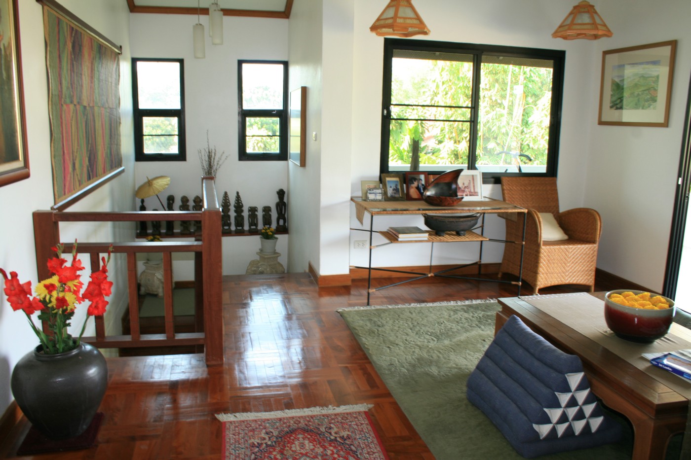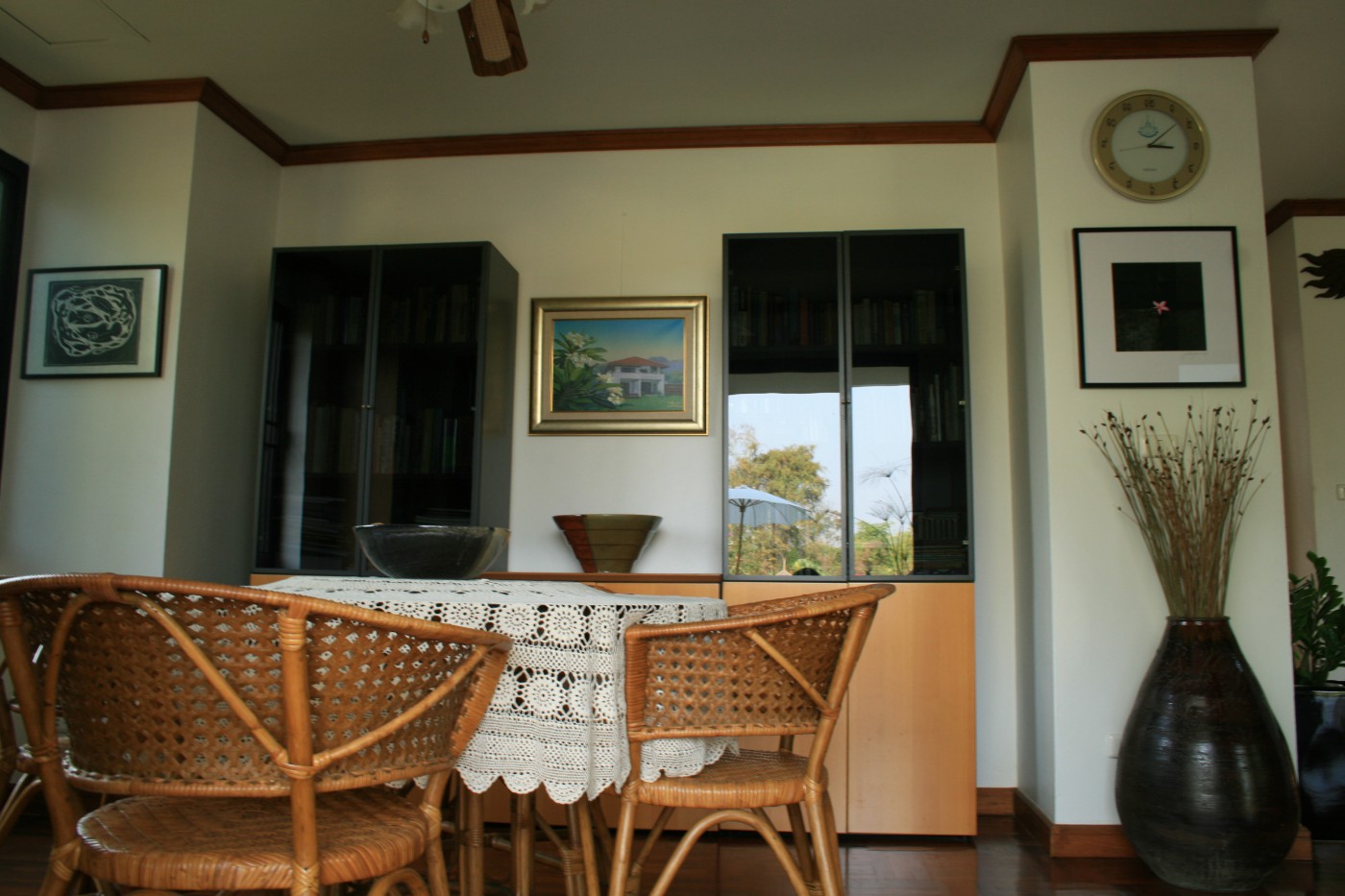 Lanna panya style house is decorated with numerous pieces of tasteful original artworks of contemporary