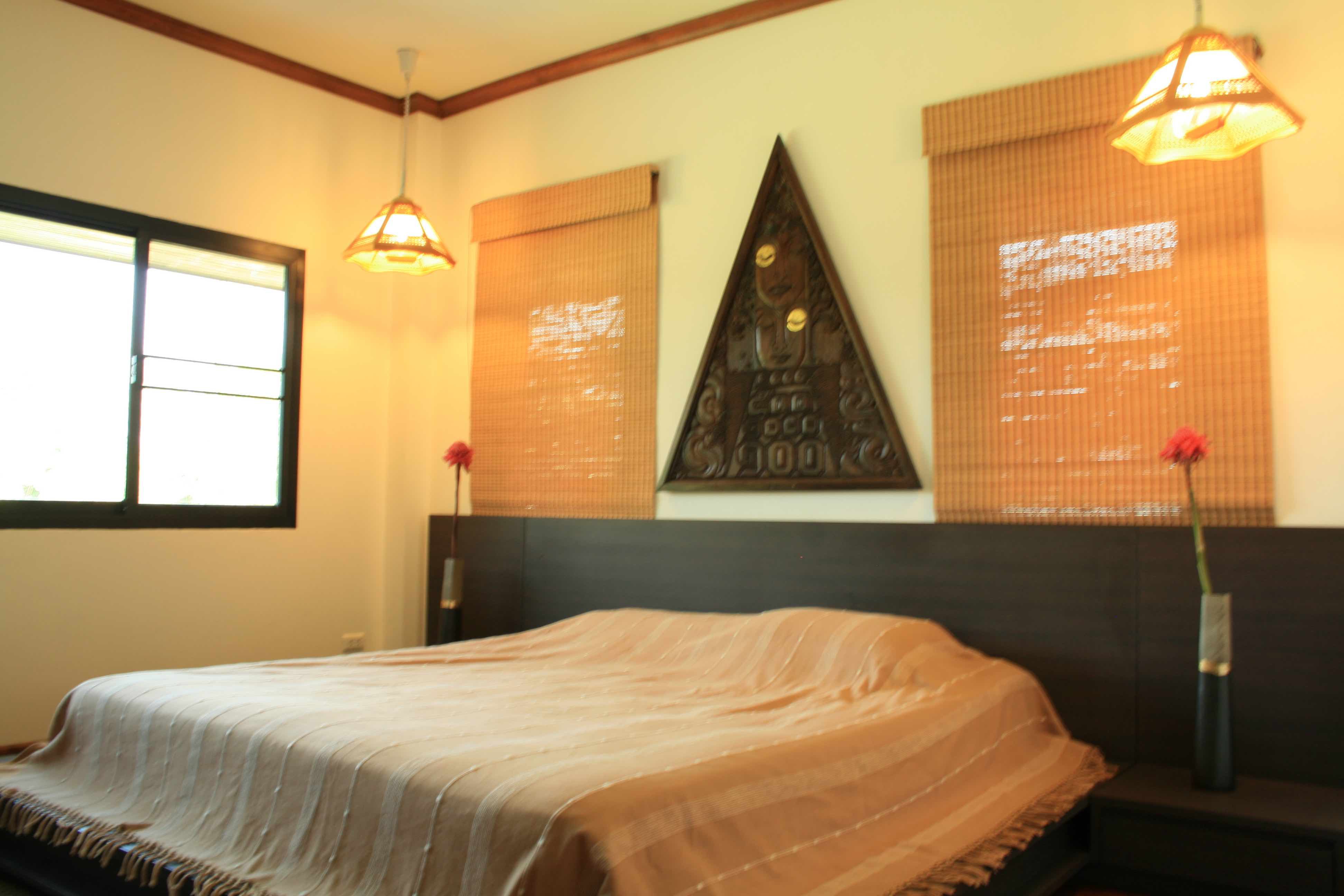and maple trees. It is fully furnished in a comfortable tropical style with built-in wall-to-ceiling closets and