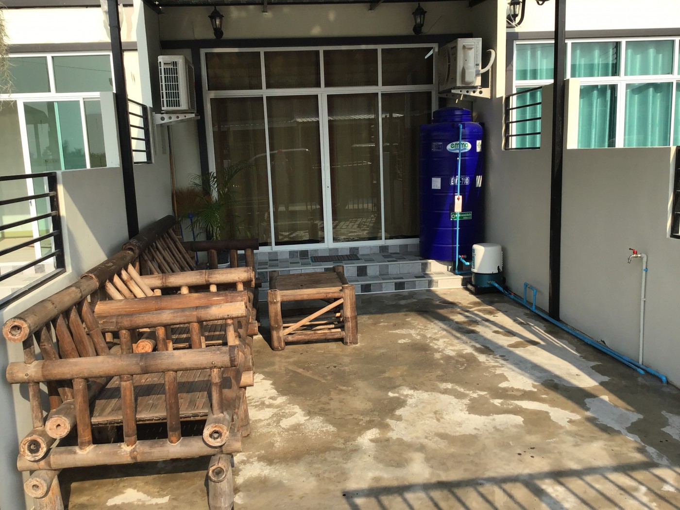 A 65 sq metre 2 bedroom town house, completed in 2020 in an 80 sq metre plot located in the City 88 development app 10-15 minutes from the centre of Hua Hin. The property is available for sale complete with furniture if required. Additions to the original build include air conditioning, shower, water tank and pump, kitchen enclosure and front yard roof.
