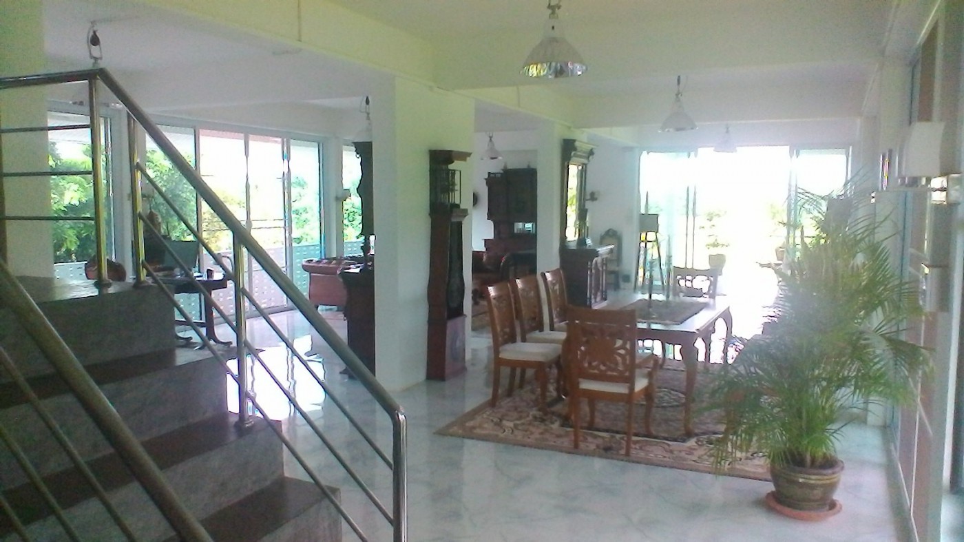 My good friend in Udon Thani (North East Thailand) is selling his new build house. The design is from a very known Japanese architect -office in Bangkok. The used materials are first class. This project is situated just at the edge of the town, which counts ca. 250.000 inhabitants. Udon-Thani has an own airport. Distance to Bangkok is ca. 600 km. The area of Udon-Thani province is beautiful. The house has 3 floors, 8 sleeping-rooms with own bathroom and air-conditioner, a big living of ca. 100 m2 , a restaurant +fully equipped kitchen and terrace and toilet group, a bar with pool-table, roof-terrace, nice BBQ place and a big parking place . The house is furnished with beautiful furniture, has many planted trees and beautiful plants in the garden, This house is unique if you like to start for instance a B& B , a training center etc. etc. It is ready to move-in and start! There is as well place enough if you like to build a swimming pool. The house is situated at a big lake and near a 18 holes international golf-course. The university campus of Udon-Thani is on a `stone-throw` distance of a few kilo meters. Separately next to the house, he offers a ready building plot of 606 m2. For instance interesting if you like to add and build a holiday-resort. Than now the price which is really unique: