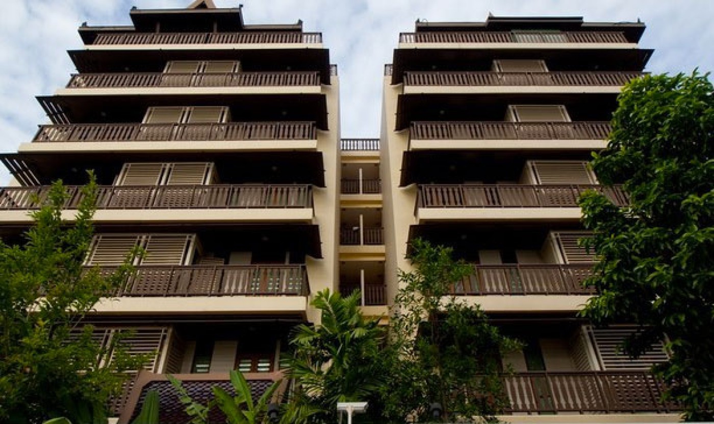 This luxury condominium building for sale includes 24 units in 8 stories. Thai Architecture features