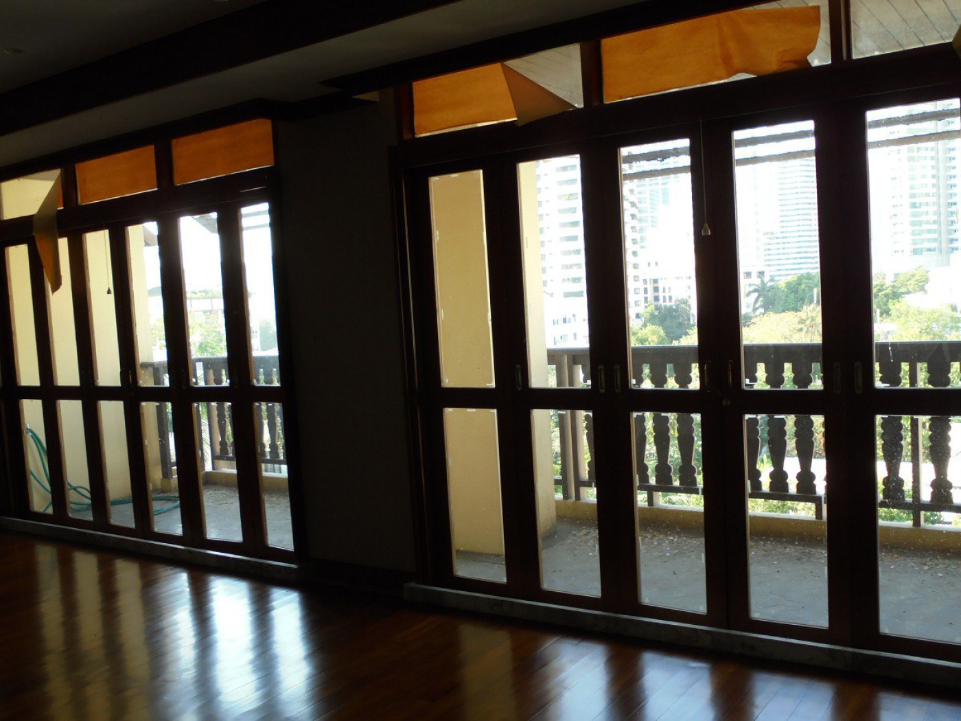 Over-sized teak doors and over-sized windows