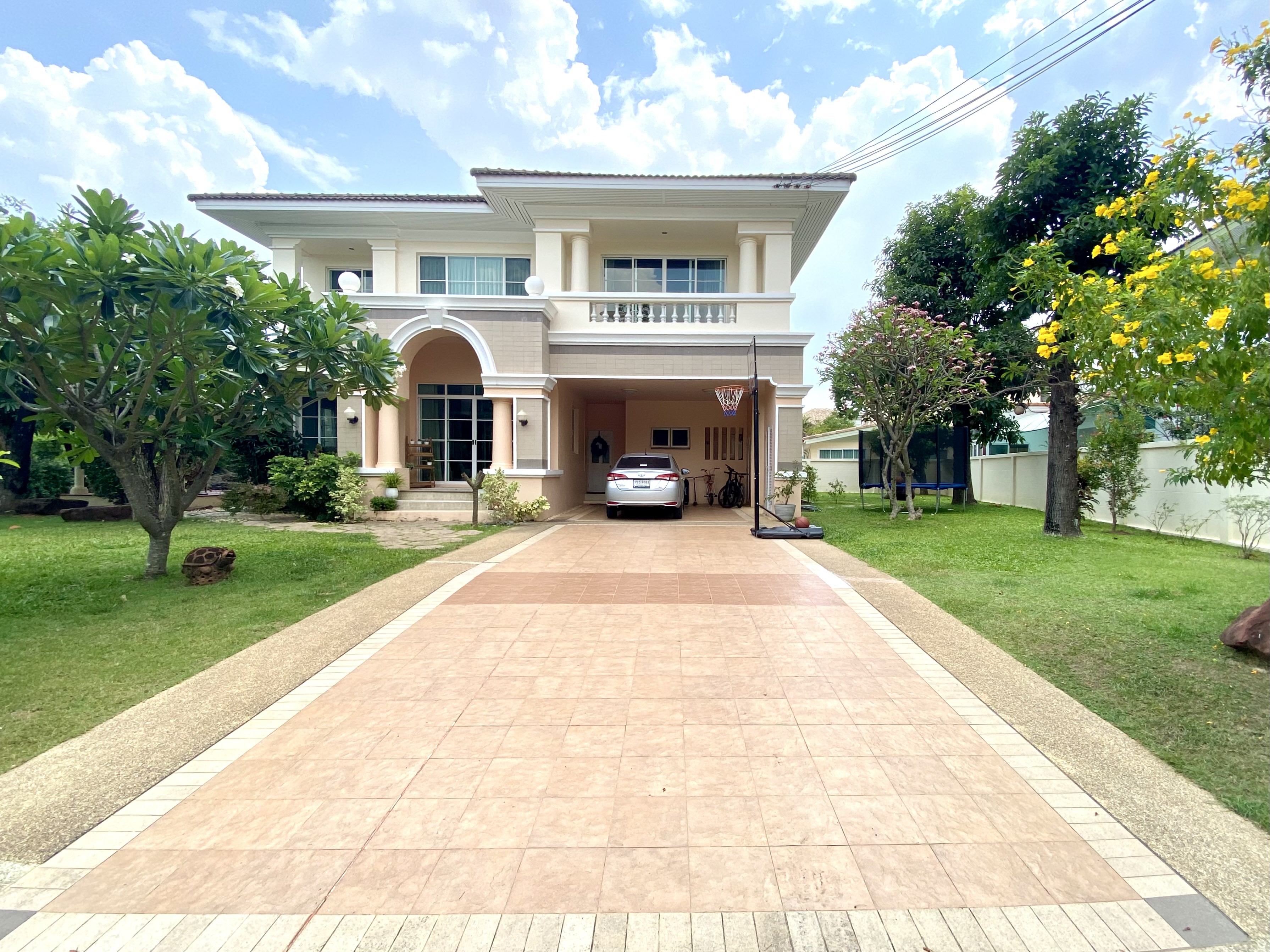 A beautiful and spacious corner house with surrounding gardens in the top residential area of Khon Kaen opposite Nong Kod Lake. Plot area 777 sqm and built-up area 450 sqm. 4 bedrooms and 3 bathrooms plus maid`s quarters. Modern fitted kitchn. Swimming pool and gym in Club House. 2 km from Central plaza.