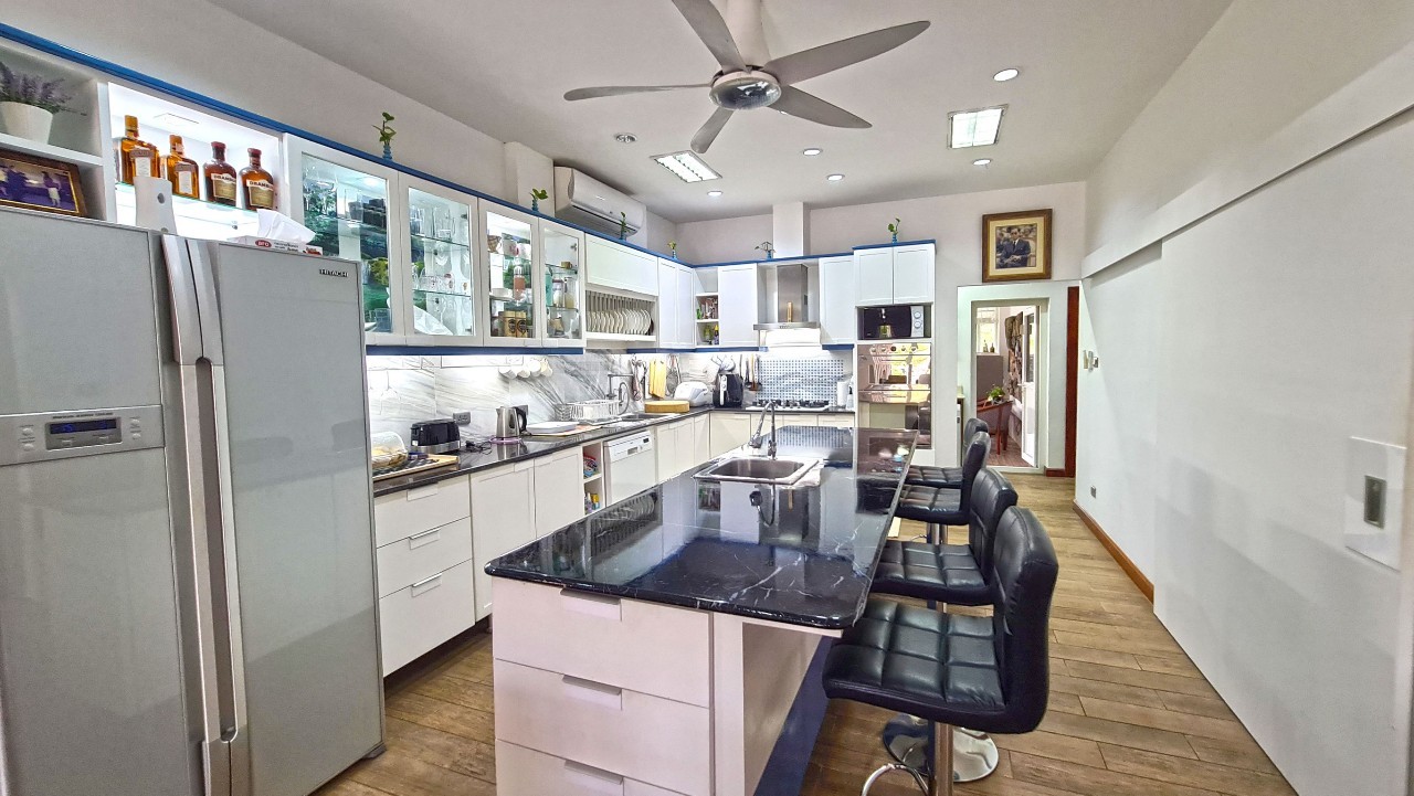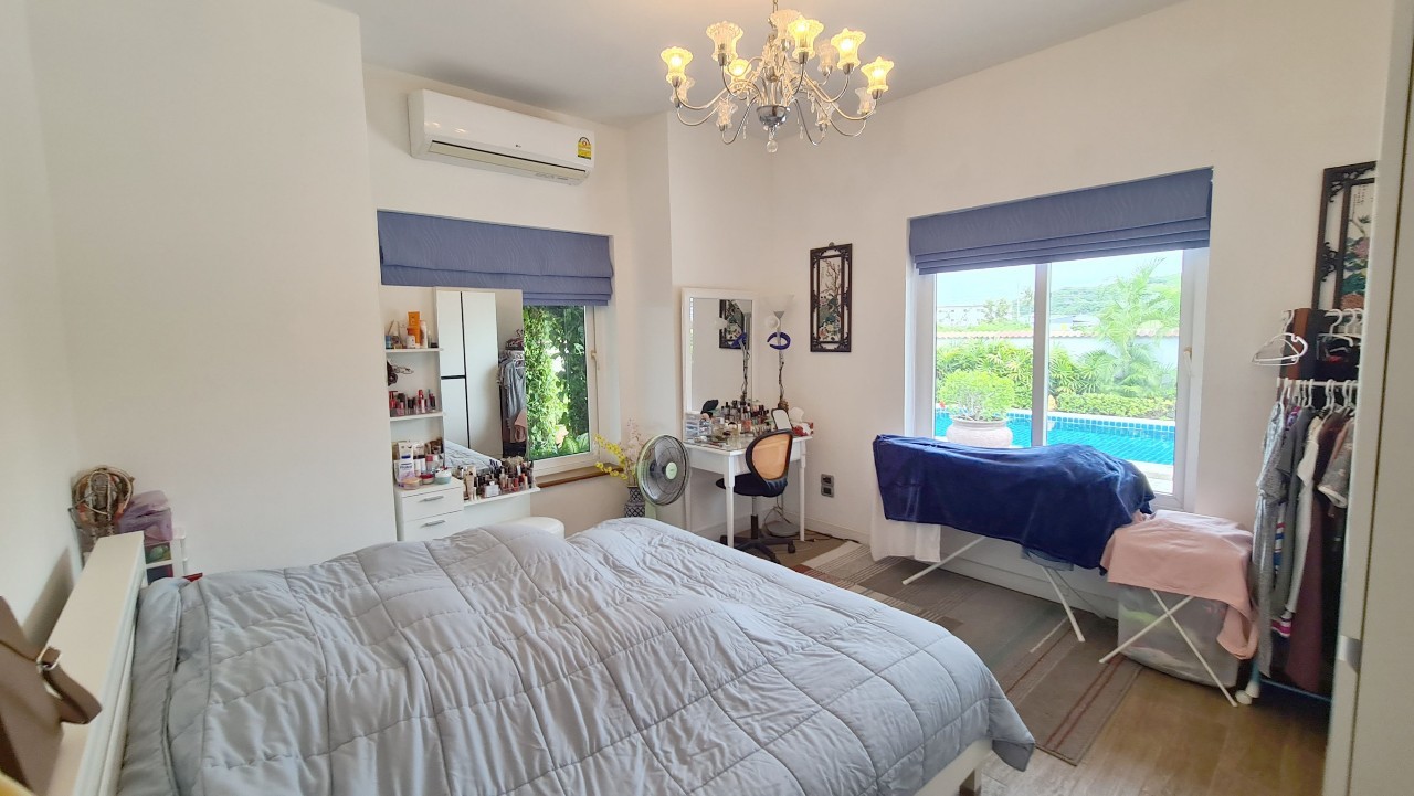 4 Bed/r, 3 bath/r, Open plan kitch/Living/Dinning, Family room, Laundry, The house is fully A/Con, has 20 fans and come fully furnished! it also has 6 security camera. The Bbq area has a waterfall, Ther is man`s workshop area, S/W Pool and Spa 15mx5m and outdoor shower, Sep Garage with electric gate, Fiber Optic cabling & wifi 5g, NO FEES to pay, Very Quiet Mooban with 11 villers. Main bedroom is on the first floor with views of the Banyan Mts, Hua Hin and Khao Takeap. 1.5 k to Bluport S.C , 2k to Hua Hin Beach, 2.5k To Market Village S.C. and 4k to Hua Hin town.