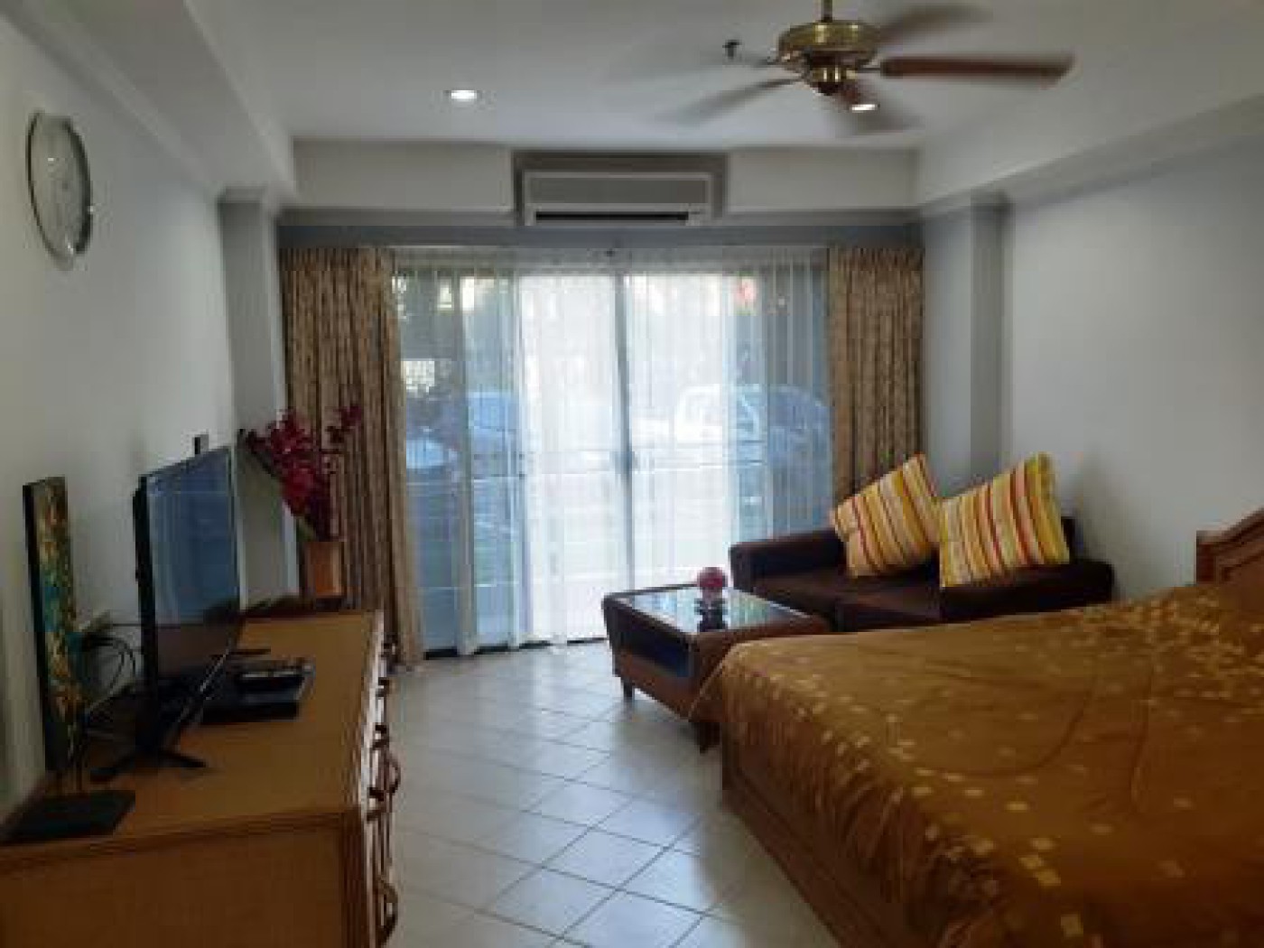 To keep you cool there`s aircon and a ceiling fan. Don`t want to go out then relax and enjoy the 39`