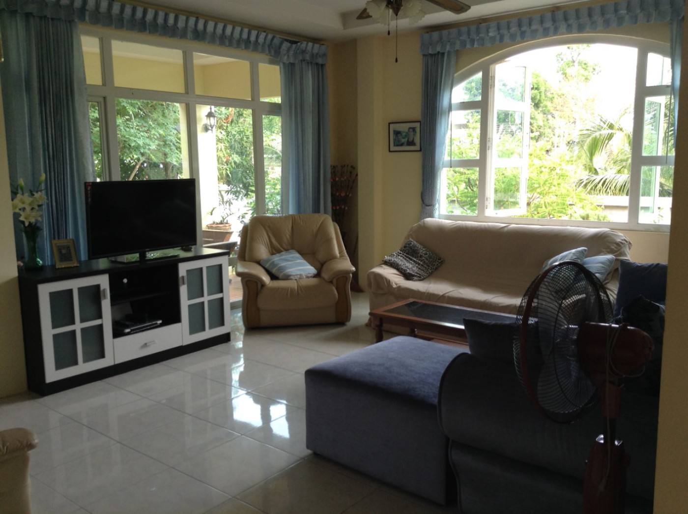 20 year old detached house in nearly 1 Rai of land with lush gardens and fruit trees. Just n2-3 Km from