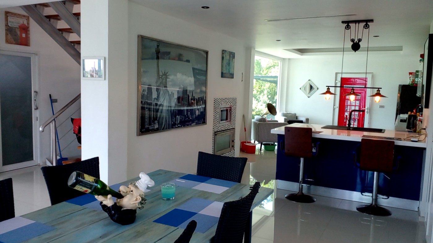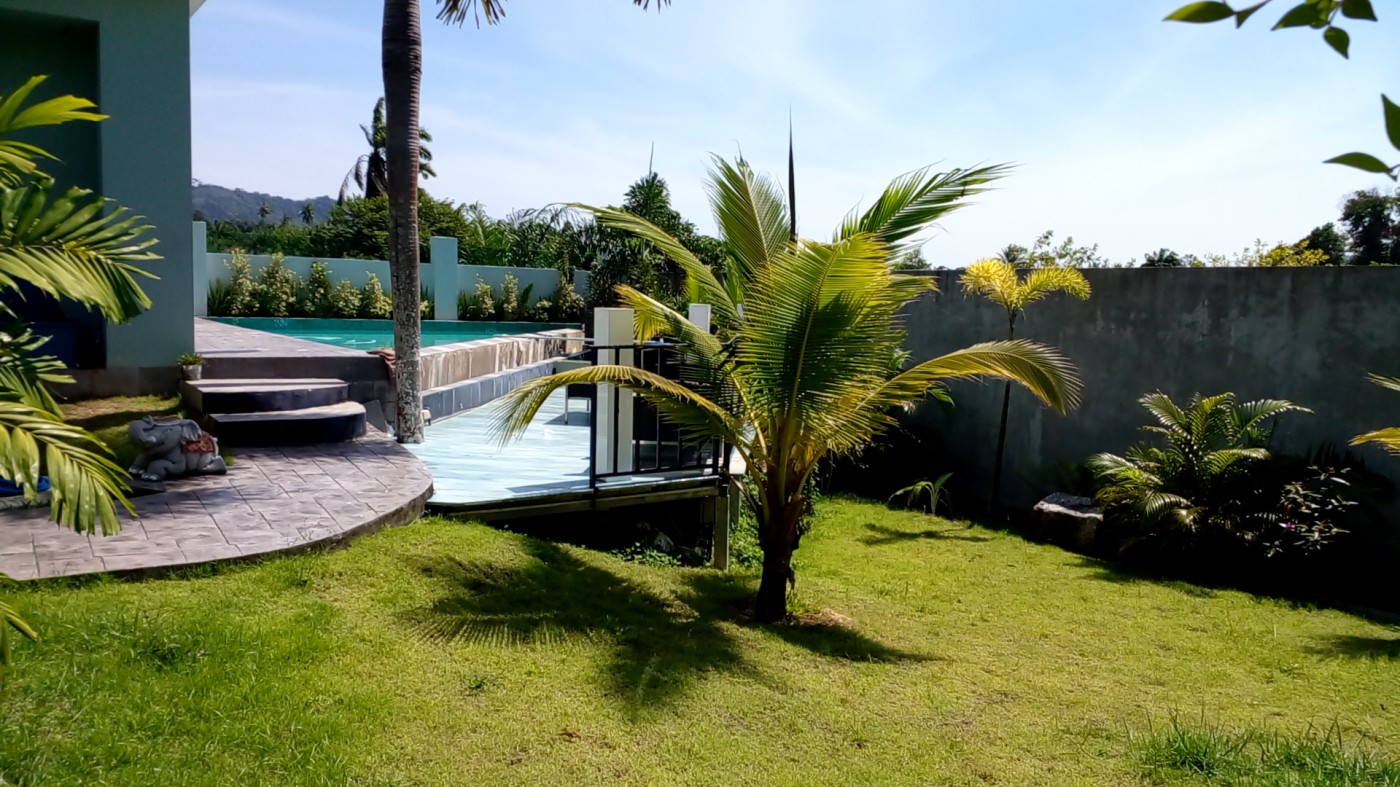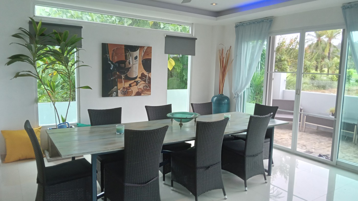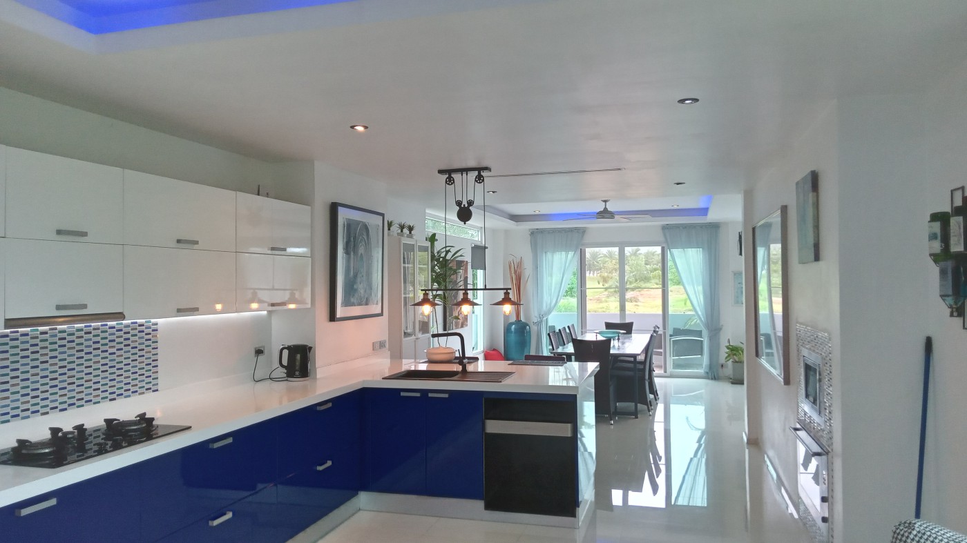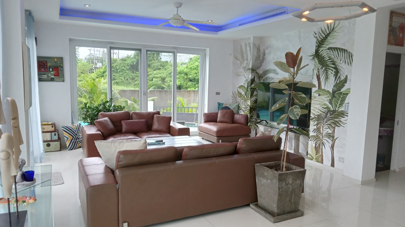 Golf and mountain views..Private Salt water Pool Villa with jacuzzi in pool,large pool deck, Garden,Electric Entrance Gate.3 Master en-suite bedrooms.1 guest bathroom. Huge Kitchen. Dining seats 8/10. 2 outdoor showers. Covered parking. Security Cams. Large flat roof Easy transfer Thai Company.