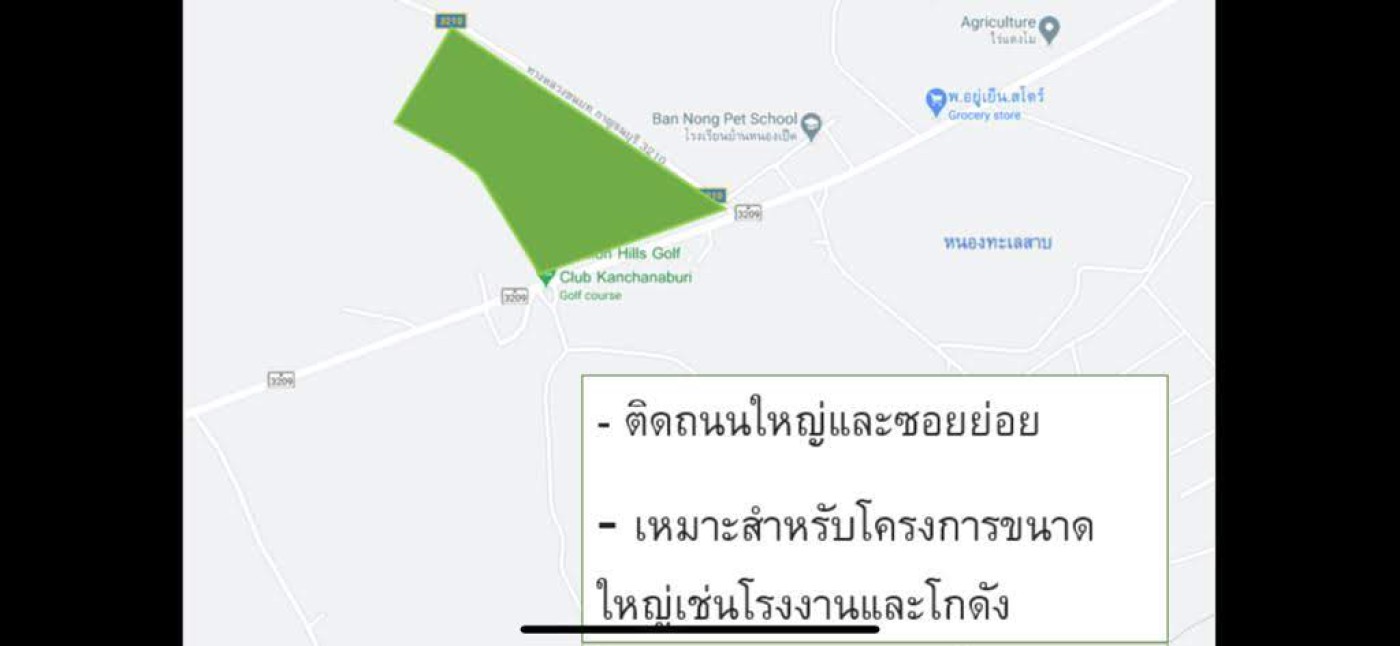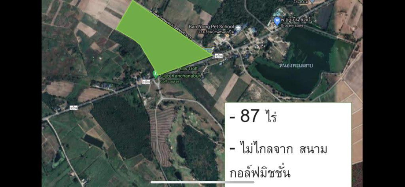 87 Rai (approximately 140,000 ) The land is good for putting up a factory/warehouse/Growing Crops. Located easy access opposite Mission Hills Golf Course. ten minutes to Nongtakya market. 2 mins to petrol pump.