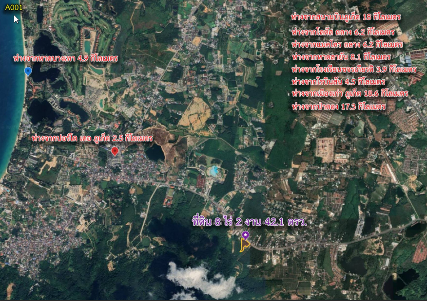 increase tourist/Expats/Business. This location is Suitable for investing as it`s nearby to many important tourist location and International School coming up, Previous high season in Phuket cause shortage of Hotels and Residence, due to over excess of tourist. This property located just next to the Main road, with land size 13800 SQM (8 Rai 2 Ngan 42 Tarang wa), Feel free to contact me for more information or if you have any question