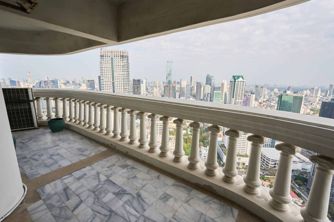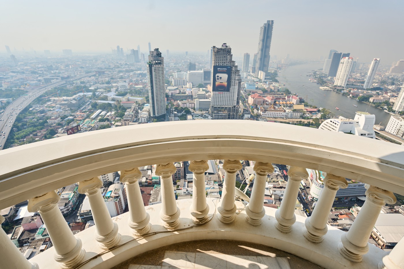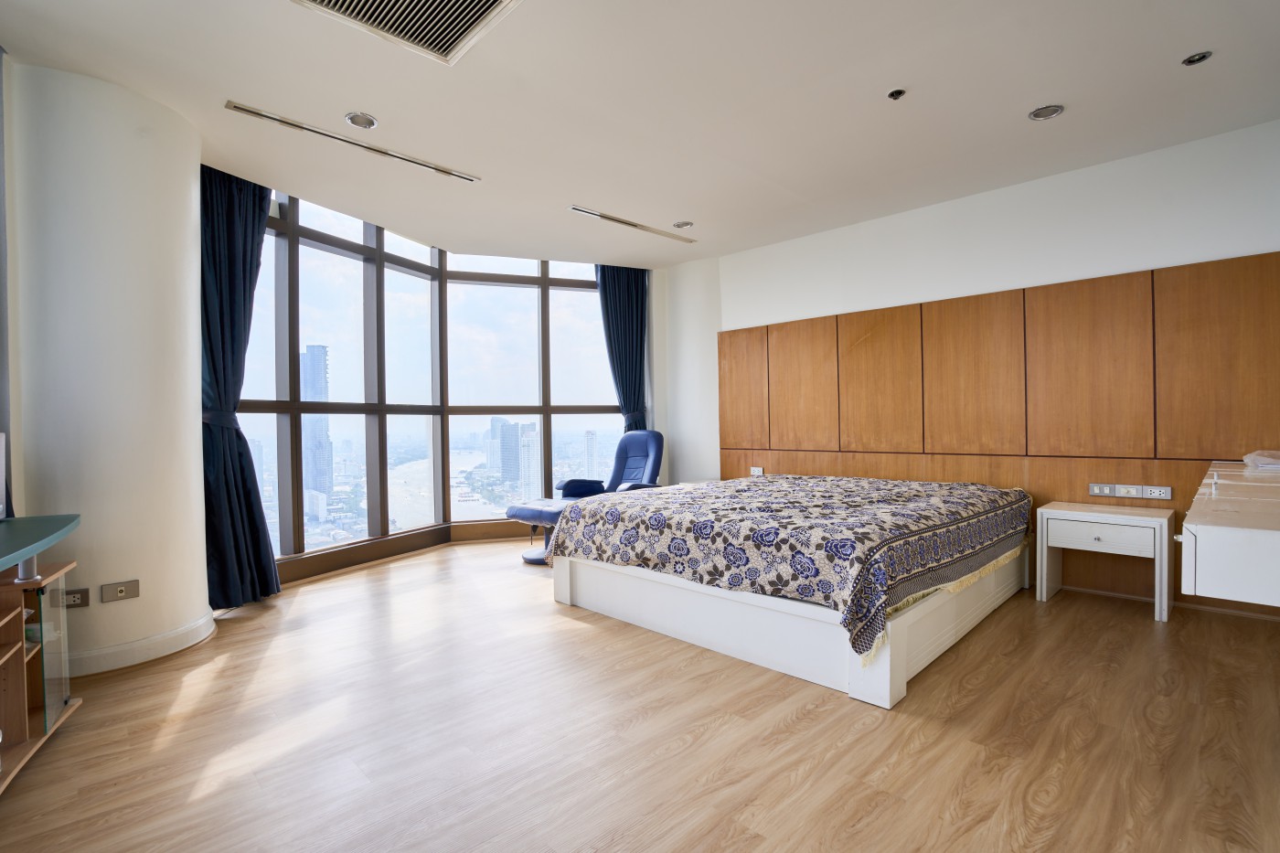 High-rise 2BR Nusa State Tower Condominium with amazing view over Chao Praya River and city Bangkok, 174 m2, 46th Fl, corner, 2 bathrooms, fully furnished, partially renovated, balconies, at Silom, Bangkok.