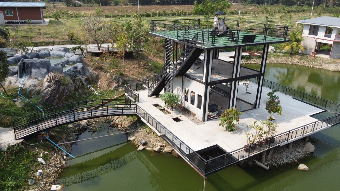 🗺 25 acres of land ➖ It is a rectangular shape, next to a 2-lane paved road. 🚩Width 85 meters, depth 500 meters 🏕 House number 7. Inside there are 4 houses under construction. - The 1st house is a 1 and a half storey house with 2 bedrooms, 2 bathrooms, 1 kitchen. - 🏠The second house is a 1 storey house with 2 bedrooms and 2 bathrooms. - The 3rd house is a 3-storey water house, the upper deck is open, the 2nd floor is an open glass room, the 1st floor is a balcony around the house and inside is an open hall - 🏠 The 4th house is a 2-storey house, the 1st floor is an open room and 1 bathroom, the 2nd floor is an open hall with a balcony. The additional part is a balcony connecting between the 1st house and the 2nd house, back to 2 external bathrooms. - 🏞️ with natural stone waterfalls Inside the farm, there is a pond in front of it, size 2 rai, water depth about 2-3 meters. - release about a hundred thousand fish, tilapia, carp, catfish, ruby fish, moh fish, siamese fish, Wat Sawai, catfish - 🌊 The water never dries up, now use cars, lawns and trees all year round. - 🏌️ The front zone has a 1-hole par 3 golf course and a guava orchard and palm trees. - In the middle there is a pond and Khlong Sai Kai, a small pond for releasing koi fish, 6 meters wide and 3 meters deep. - In the middle of the farm are fruit orchards, passion fruit, guava, mango, guava, tamarind, tamarind, giant tamarind, mulberry, Malay lapod, rose apple, santol, santol, pomelo, house jujube, fragrant coconut, giant maomao, giant mahogany and a beautiful lotus pond. Planting mixed plants, claws, ylang-ylang, neem, cassia, cassia, mahogany, pinch of water, inchan, tonkoi, and sake. - 🥙 At the end of the farm, it will be a vegetable garden. Holland papaya, banana, aromatic coconut - 🏞️ There is 1 pond in the back, an area of about 2 rai, about 2-3 meters deep, releasing fish, Yi Sok Swai, catfish, doctor fish, catfish, tapian, convenience in the farm. - 🎥 Install 5 CCTV cameras - ⚡ Ready to install internet, electricity - 🚿Agricultural system part has been walking the water delivery system with PE pipes for the whole rai, and the water distribution system with drip and sprinkler systems for the whole rai - ⛽ As for the water delivery machine, there are 4 electric 2-inch pumps, 2 2-inch gasoline pumps, 1 Kubota 4-inch diesel engine. - ⛳ The mowing section in the farm has 2 lawn mowers and 1 green golf mower.