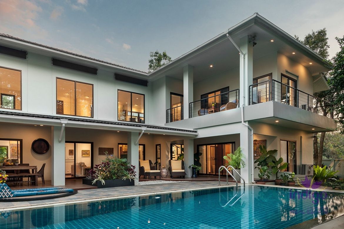 3 Bedroom House for sale in Mueang Len Chiang MaiThis beautiful immaculate home is ideal if youre looking for a home amongst nature. Imagine relaxing by the large salt water swimming pool and enjoying the view of the river lined with mature trees. This house will make a great place to be amongst nature and to escape from the hustle and bustle of the city yet it is a place where youll be able to make connections with the local community and the conveniences of the city is only about 1520 minutes drive away. Features: Spacious living and dining area with a lofty high ceiling. There are large screen doors that allows access to the deck and the pool. Lovely well equipped open western style kitchen with a wall oven microwave and also a bar area. The bedrooms are all located in separate areas of the house providing a lot of privacy for the family or guests. There are 2 bedrooms on the first floor both with pool access. These would be ideal for guests or seniors. The upstairs area is accessible via a spiral stair case that leads to a large office area. The master bedroom is on the 2nd floor and has a great balcony that overlooks the pool river and greenery. There is also a cat walk with museum lighting which would be ideal for displaying artwork. Outside area: Two car garage with roller sqm Salt water pool with a newly installed chlorinator and pump Jan 2021 New hot water heater Oct 2022 The house is secured by a cloudbased 7camera CTTV system and comes with an upgraded home theater. The home is available either furnished or house is located in a peaceful location yet still very accessible to markets and shops. 6 min drive km to Kha Charoen Food Market 13 min drive km to Homepro Sansai 16 min drive km to Meechok Plaza 16 min drive km to Central Festival 31 min drive 24 km to Chiang Mai International AirportPlease contact us for more information or to view.