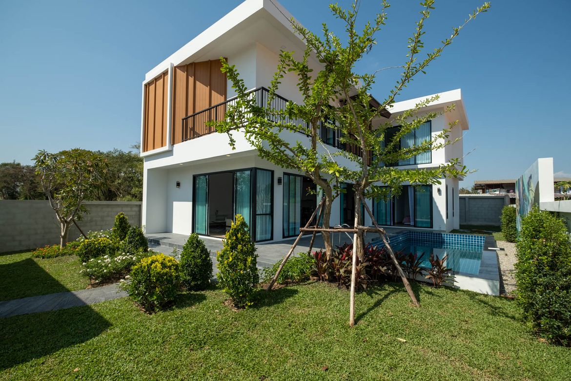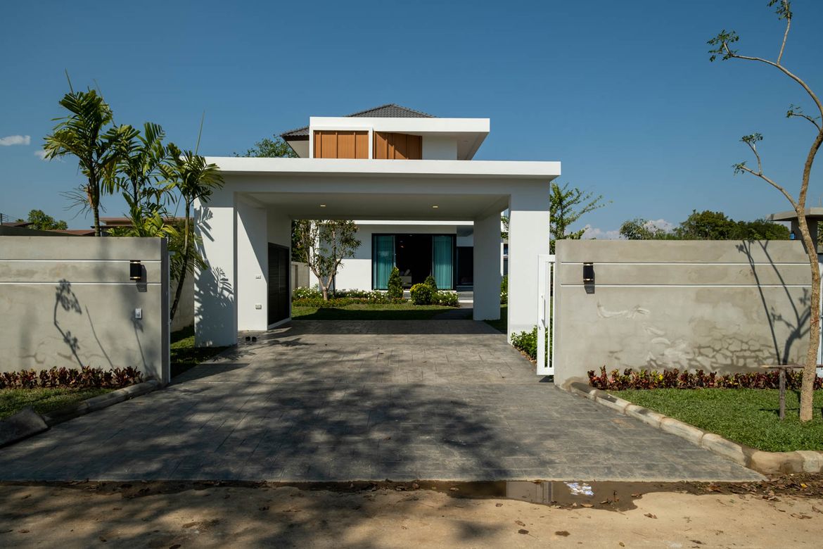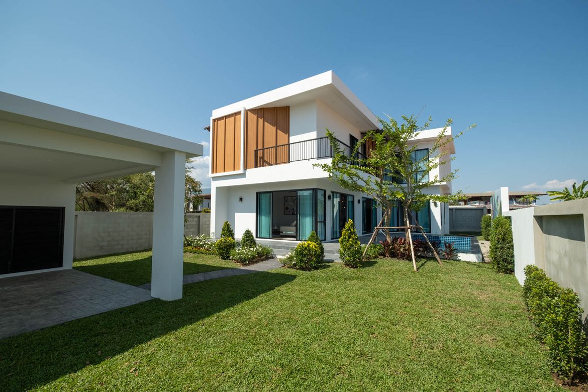 4 Bedroom House for sale in Hang Dong Chiang MaiContact Thai Northern Properties for more information: New 4 bedroom pool villa located in Wang Tan Development just south of town. The house has completed construction and features a modern openplan design with large western kitchen living room and dining area with direct access to the pool. There is also a first floor guest bedroom and bathroom on the first floor. A goodsized covered laundry area is just behind the kitchen. The second floor has a very large landing with the three bedrooms all with ensuite bathrooms off of it. The master bedroom has a small walkin closet and ensuite bathroom with Tan Development is wellestablished and has a lot of open space mature trees good facilities including a large pool lakeside restaurant security and tennis courts. It is a popular area with a mixed Thai and foreign community and its central location allows for easy access to shopping town and the airport.