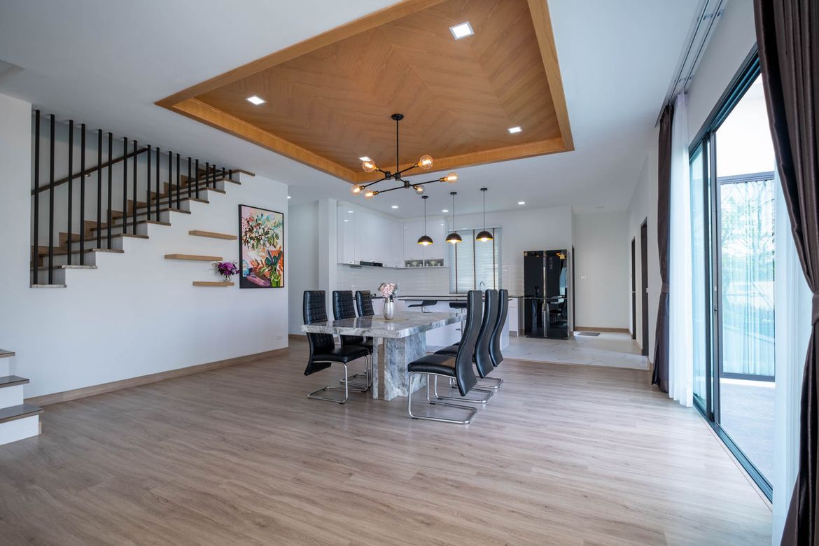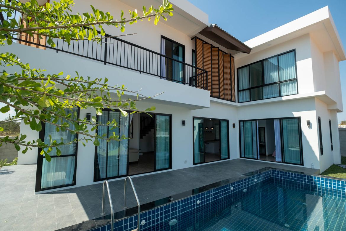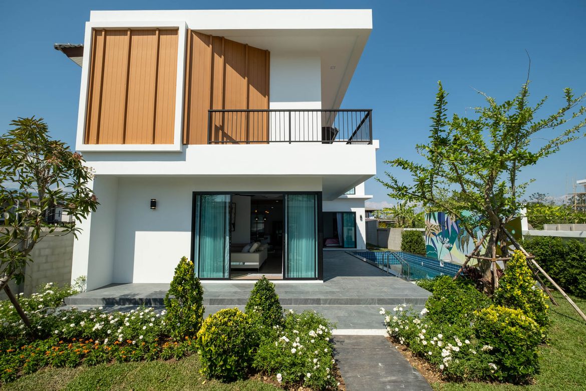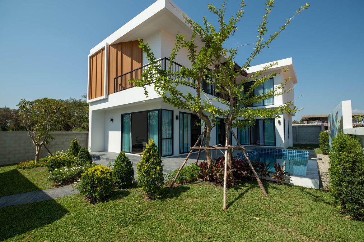 4 Bedroom House for sale in Hang Dong Chiang MaiContact Thai Northern Properties for more information: New 4 bedroom pool villa located in Wang Tan Development just south of town. The house has completed construction and features a modern openplan design with large western kitchen living room and dining area with direct access to the pool. There is also a first floor guest bedroom and bathroom on the first floor. A goodsized covered laundry area is just behind the kitchen. The second floor has a very large landing with the three bedrooms all with ensuite bathrooms off of it. The master bedroom has a small walkin closet and ensuite bathroom with Tan Development is wellestablished and has a lot of open space mature trees good facilities including a large pool lakeside restaurant security and tennis courts. It is a popular area with a mixed Thai and foreign community and its central location allows for easy access to shopping town and the airport.