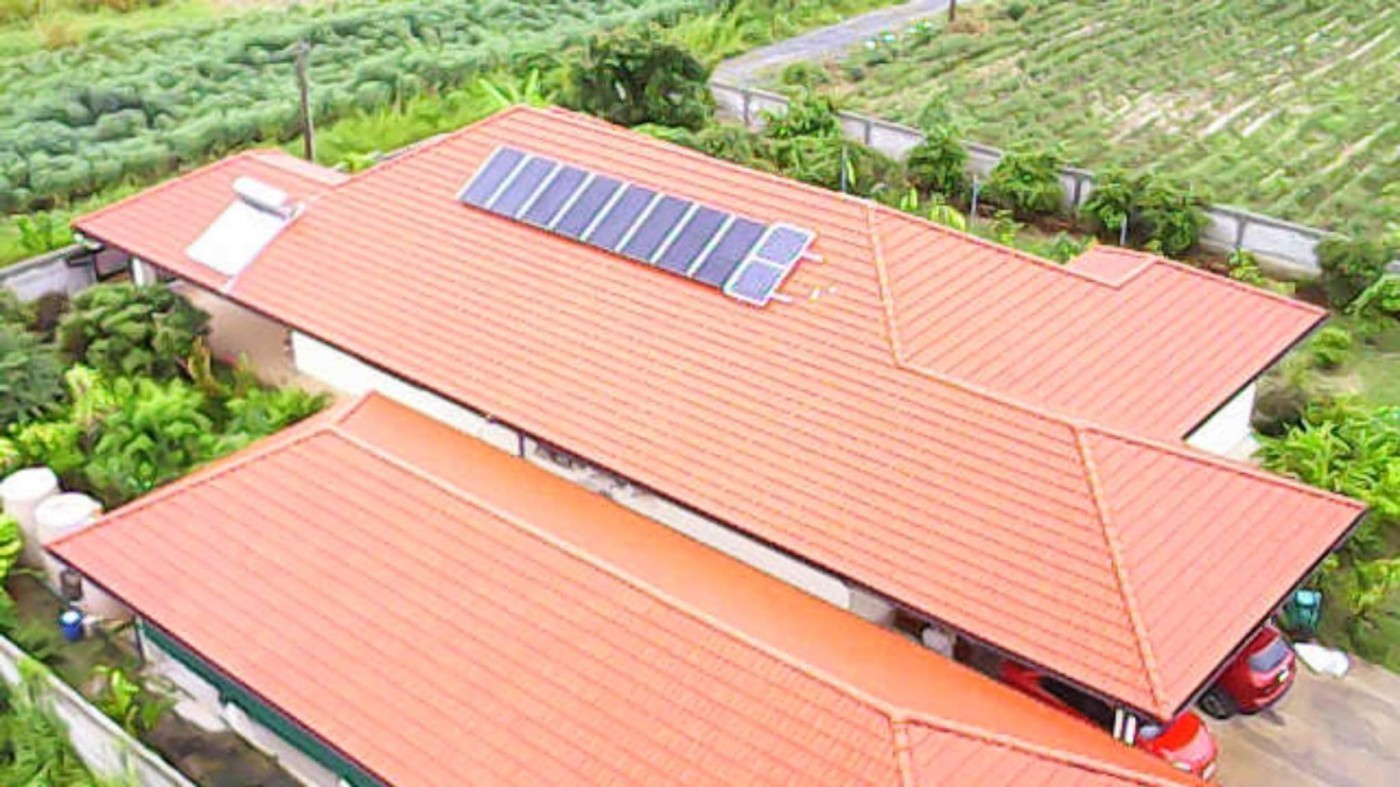 =Electricity by own solarpanels and batteries.A gridconnection is available too.