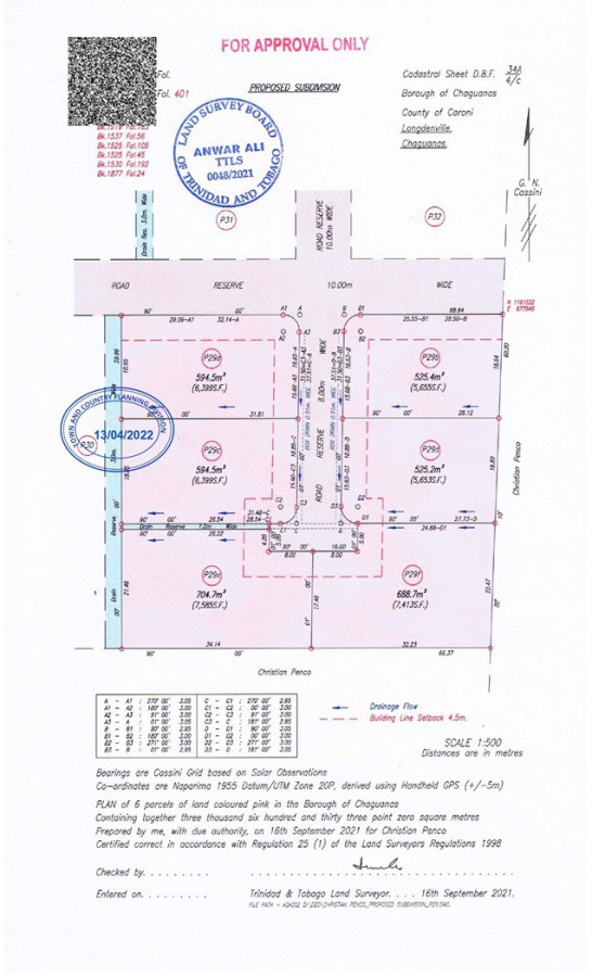 Central Serity land for sale; benefit from living in Trinidad`s most populated area! Recently subdivided, the roads have almost been completed, and the utility and other infrastructure such as drains, is already in place! See the photographs and Cadastral Map included!