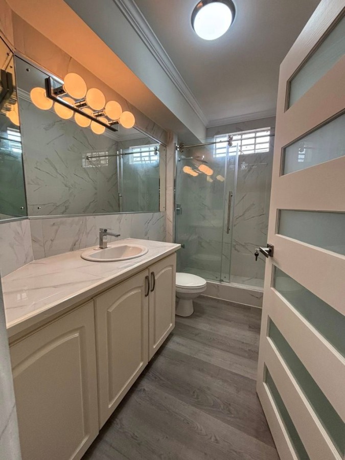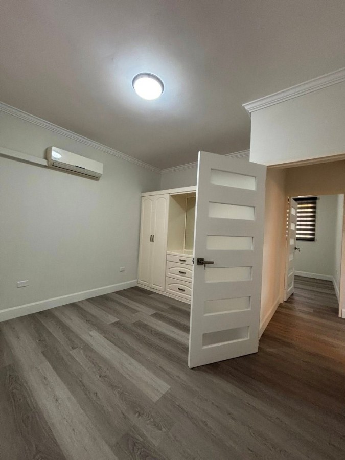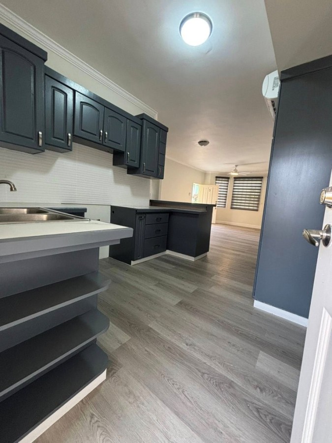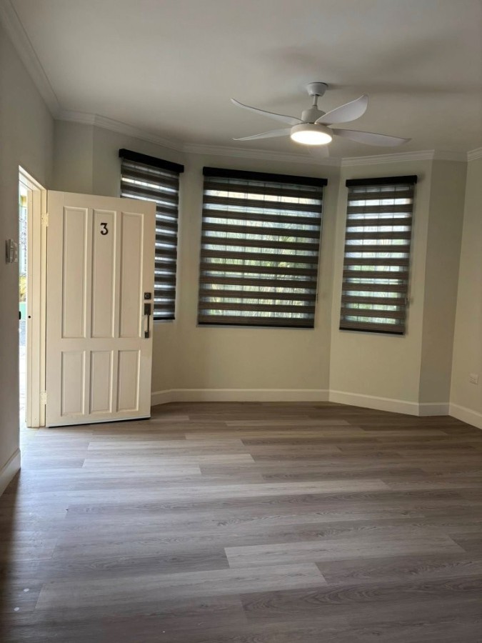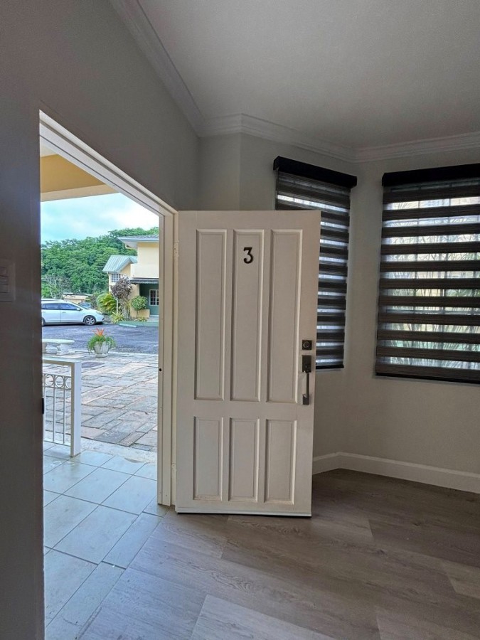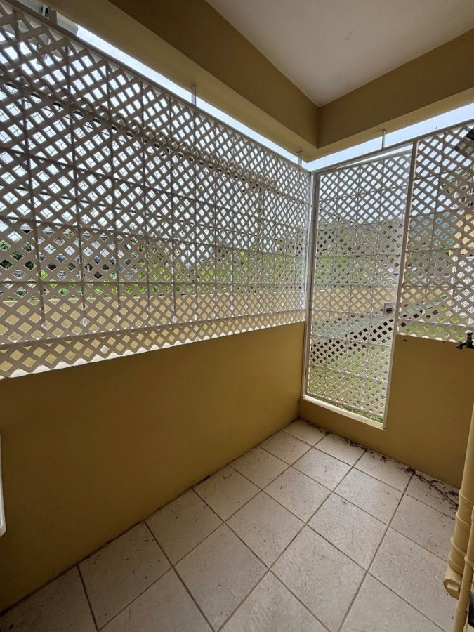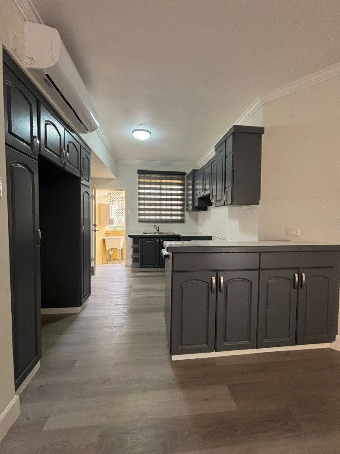 Known for its clean fresh air, Santa Cruz also conveniently offers lots of local amenities including a service station, supermarket, green market, and a health center. Tucked away behind, the junction`s UNIPET service station, Jacaranda Court is a popular gated residential community complex, landscaped, and complete with backup water storage, common areas, visitor parking, and a swimming pool with an outdoor patio-set. The unit is a ground-floor, two-bedroom, with one full bathroom. It has recently been renovated! Features a living room bay window, and a ceiling fan in the living room as well! And now with a wood laminate floor, floor-to-ceiling bathroom tiles, and a glass shower enclosure. Additionally, you will find, crown molding and skirting throughout, and the unit is fully air-conditioned... The development is small-pet friendly!