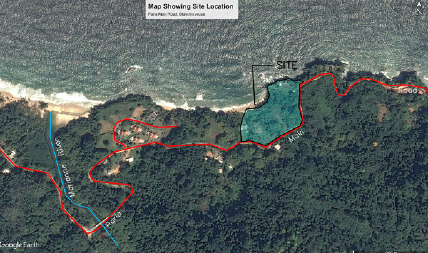 The property is situated on the Paria Main Road, Blanchisseuse, east of the Marianne River, with its northern boundary being the Caribbean Sea. 56,680.6 sq. ft., flat freehold land along the shoreline overlooking a beach. Suitable as a large beach house property, or for resort or retreat purposes! The lot currently has outline planning permission.