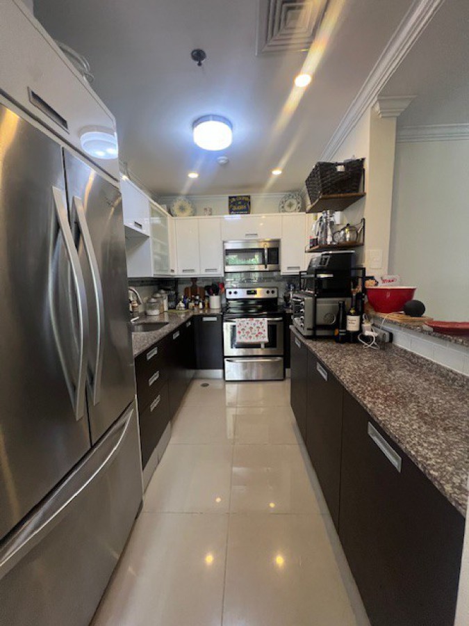 Located within the West Hills 24-hour gated complex! This ultra-modern condo has three bedrooms, two bathrooms, separate powder room, internal laundry room, balcony with a view, combined living and dining, and a separate TV room with linen/storage cupboards. Features central air-conditioning, open concept, kitchen window, bedroom and living room ceiling fans, granite kitchen countertops, stainless steel appliances, custom vanities, glass shower enclosures, ensuite master, built-in cupboards, imported fixtures and finishes, and a dishwasher is also included! The development on the other hand, offers a variety of amenities, such as an outdoor gym for adults, a jungle gym for the kids, tennis court, water fountain, clubhouse, swimming pool, and a jogging trail! Comes semi furnished. Suitable for investment!