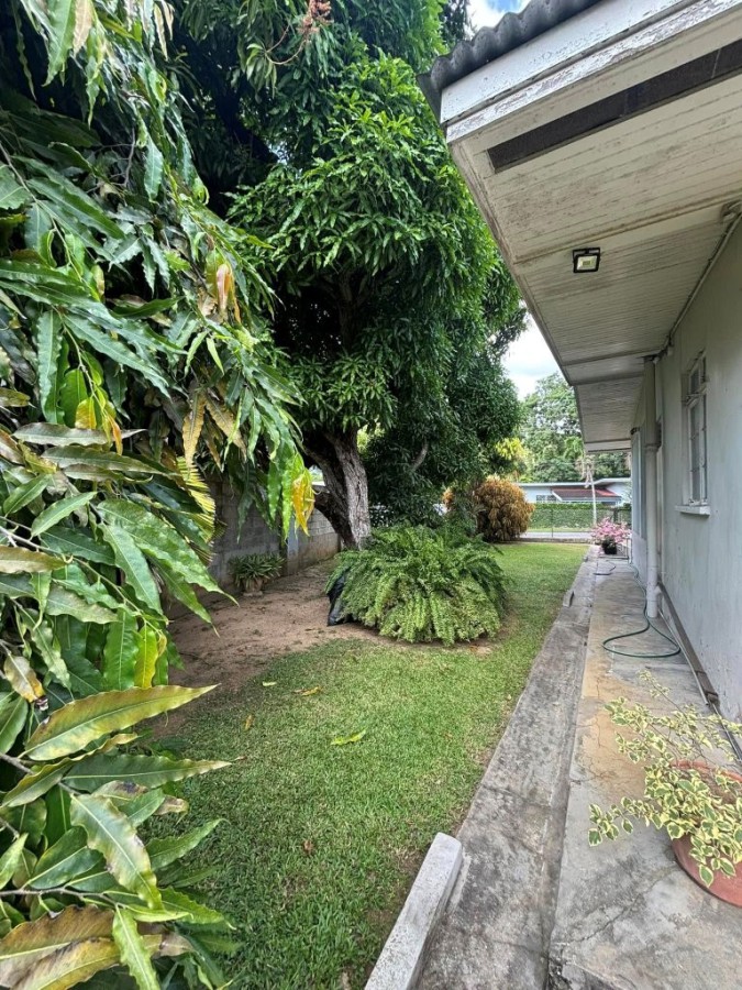 Located on a popular suburban street in Trinidad-s largest residential area on Apple Blossom Avenue, this flat and desirable residential corner property comprises 9,350 sq ft of freehold land-roughly two average-size city-suburban lots-and a single-story three-bedroom family home constructed during the late 1950s. Features include a separate pedestrian entrance leading to the front porch, a separate kitchen, high ceilings, original linoleum flooring throughout, original separate toilet and shower stalls, and a split level between a small entrance foyer and the living room. Outside the attached carport fits one car and the driveway can accommodate two additional vehicles. A garden with mature trees and a manicured lawn surrounds the home. You will also find a storeroom with an outside bathroom and a backup water storage tank without a pump. With generous space, the property has potential for expansion, such as adding a two-story apartment annex at the rear. Additional features include a galvanized roof, burglar proofing, and an air-conditioned master bedroom. Price changed from TTD 3,300,000 to TTD 2,750,000 (decrease of TTD 550,000 on 2026/01/23). DISCLAIMER: bedrooms and laundry not depicted in this advertisement.
