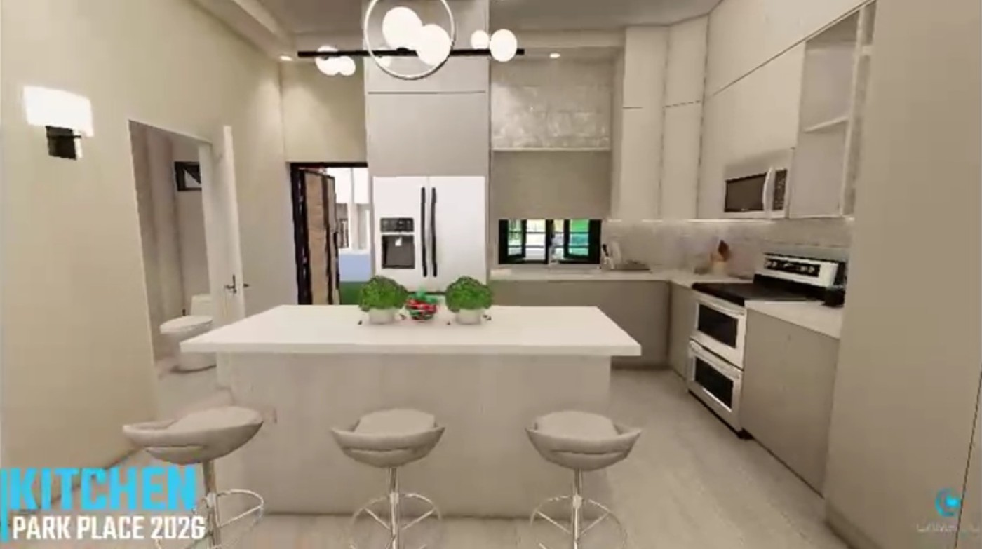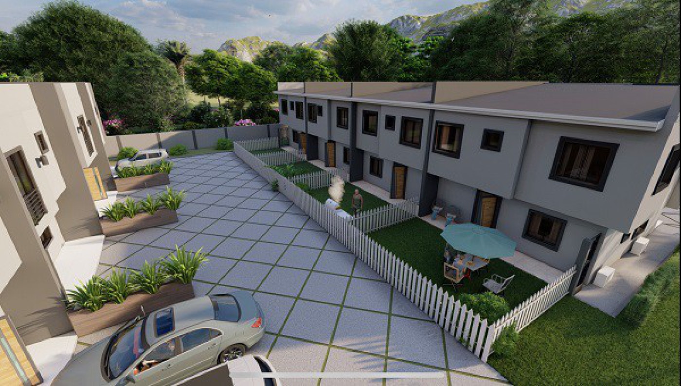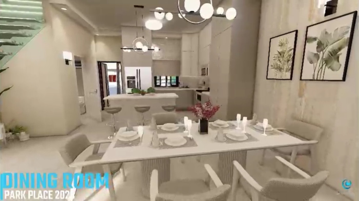 Affordable modern luxury at Park Place Villas. These units feature a private backyard, a spacious open-plan main floor with a powder room, pantry, granite counters, a kitchen island, porcelain tiles or laminate flooring, and gypsum ceilings. Upstairs, three bedrooms, two baths including the master ensuite, a master walk-in closet, and a laundry. Outside, two dedicated parking spots. A recreational park and a swimming pool are in development and due on final completion in 14 months. Additional features include a front porch, ceiling fans, modern lighting fixtures, chandeliers, back patio, bedroom feature walls, built-in bedroom cupboards, glass shower enclosures, floating vanities, recessed ceilings, downlighting, full air conditioning, and burglar proofing. The price shown is for middle units only. End units are $1.75M and have just over 100 sq ft of additional space. The development will be completed in 3 phases, with only one middle unit remaining in Phase 1.