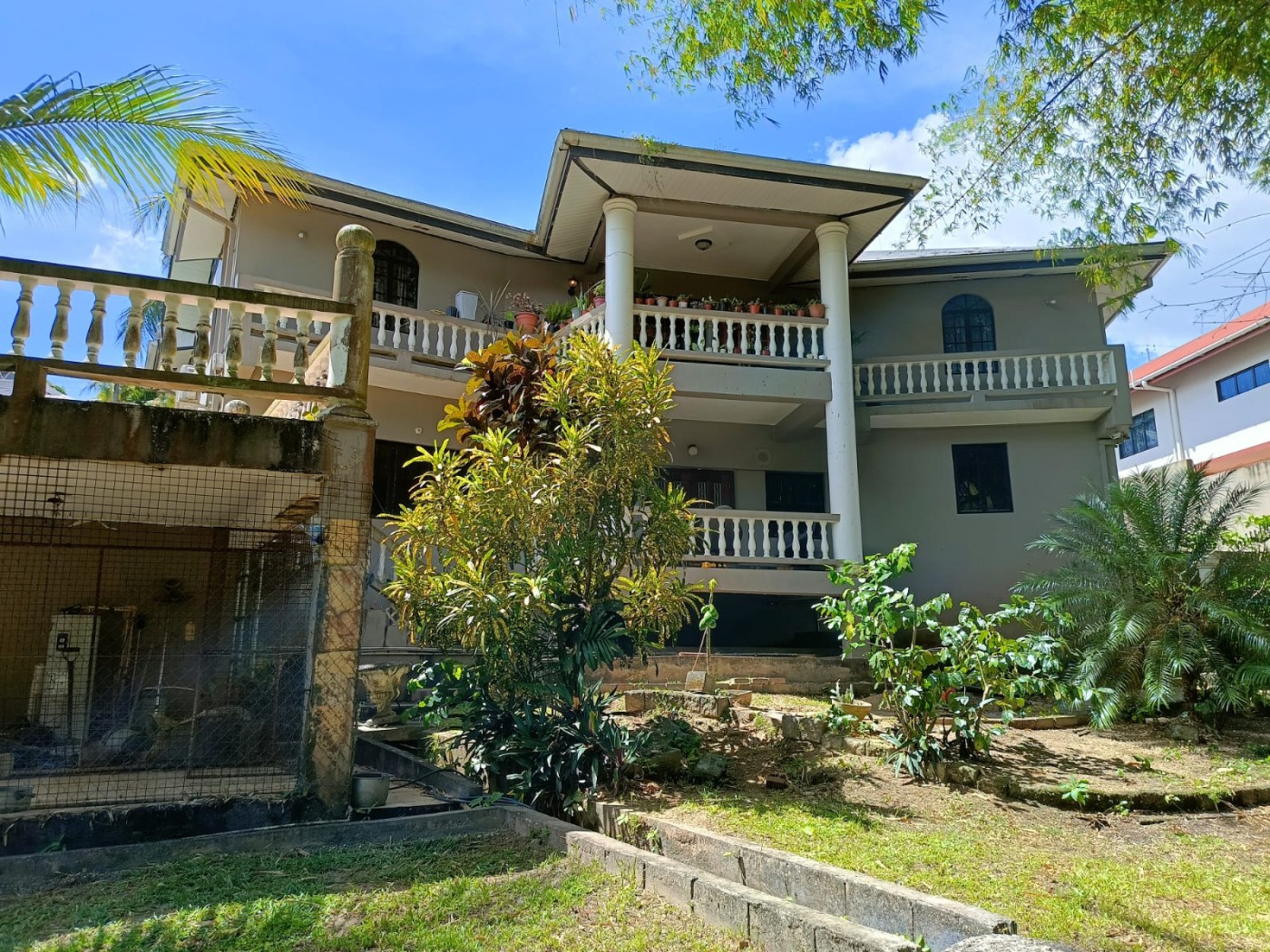 Prime St Augustine 5-Bedroom Home - Open-Plan Living, Natural Views & Exceptional Location. This spacious two-storey concrete and brick residence in a secure upper-middle-class neighbourhood offers privacy, convenience and natural surroundings. Minutes from the University of the West Indies, major roadways, the airport and the capital, with beaches within one hour. Set on about 10000 sq ft of gently sloping land with lawn and natural gardens, it features open-plan living, tiled floors, 5 bedrooms, 3 full bathrooms, 2 half bathrooms, air-conditioned bedrooms, covered garage and remote security gate. The master suite has a walk-in closet and ensuite; there is a second ensuite bedroom, a separate laundry room, versatile lower-floor living or office space, two balconies and a covered terrace. Additional features include two 1000-gallon water tanks, pump system, water heater and perimeter fencing.