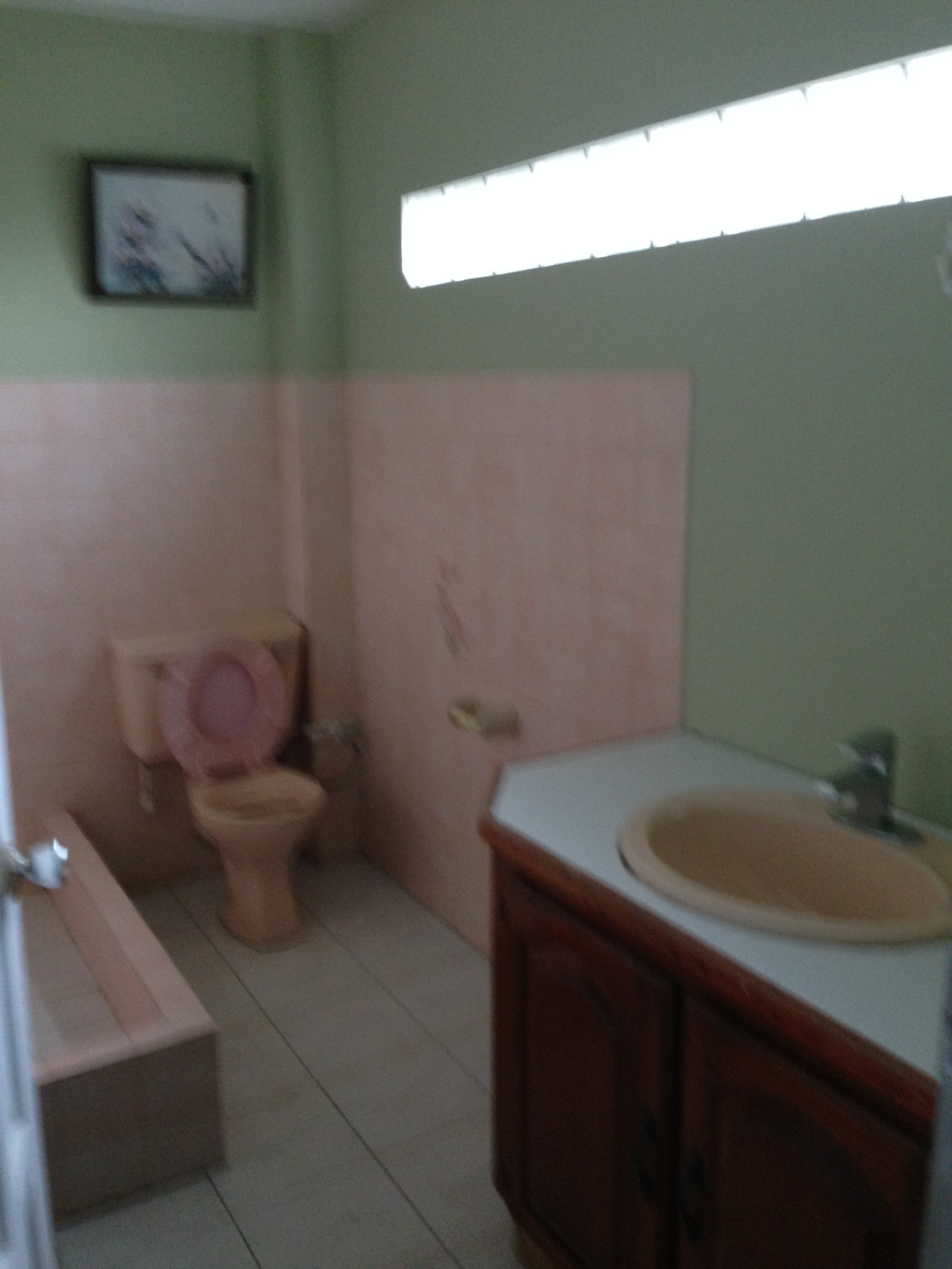 4 bedroom, 3 full bathroom, two story concrete building in the residential neighborhood of Gajadhar Lands, Princes Town,Trinidad. The building area is 2500 sq. ft. and the Lot size is 5,000 sq. ft. All Teak solid wood cupboards. The Master bedrooms is air condition. There are 800 gallons of water reserve. More photos can be made available.
