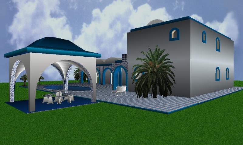 Villa Kenza Blue starting at 224000 DT without land Typical djerbian villa with local charm and a very functional architecture. Patio with arches and porch with dome. First floor: living room with dome, dining room, open kitchen, 2 arched suites (bedrooms + shower room) separate wc and laundry room, terraces. 230m2 modifiable; Choice of tiles and interior painting. Options: second floor, sun deck; garage, swimming pool, outside shower, equipped kitchen, dokana… Delivery in 8 months, with follow up from the architect and the concrete engineer, complete administrative and legal files.