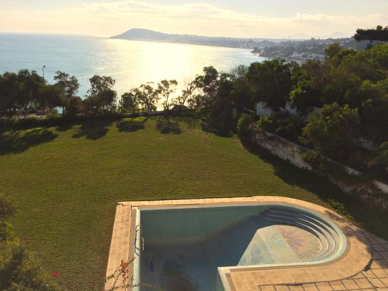 The Villa is situated on the highest point of Gammart and within the compound of the Golden Tulip hotel. From the Villa you have one of the best vue of Tunisia looking over the La Marsa Baie.