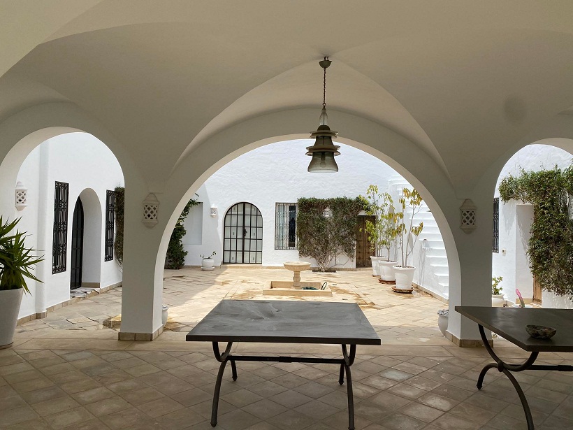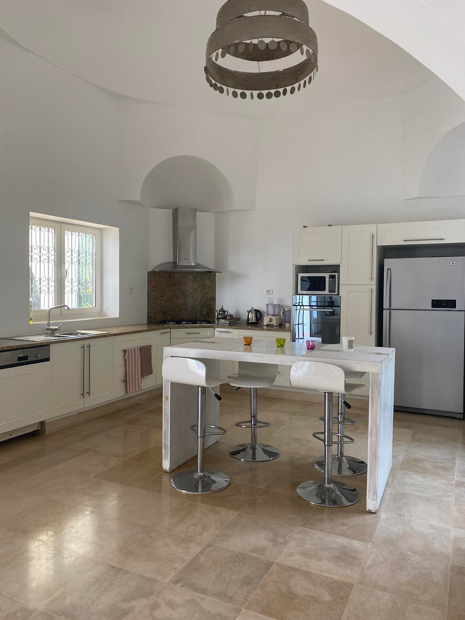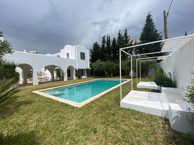 For sale a Superb Property well located in one of the most select areas of Hammamet. Offers you a very nice living area of 450 m2 covered, with an excellent south / east orientation, built on a beautiful plot of 1000 m2, all this embellished with a magnificent sunny swimming pool, the villa consists on the ground floor of a large patio accessing a large living room, dining room and a large well-appointed and equipped kitchen, extra bathroom, three beautiful suites each with a private bathroom and dressing room. On the 1st floor 3 suites with their dressing rooms and private bathroom, large panoramic terrace, this villa with modern comfort, fully air-conditioned with a better distribution of freshness and its central heating has preserved a typical and local architect with its vaulted roofs crosses, arcades