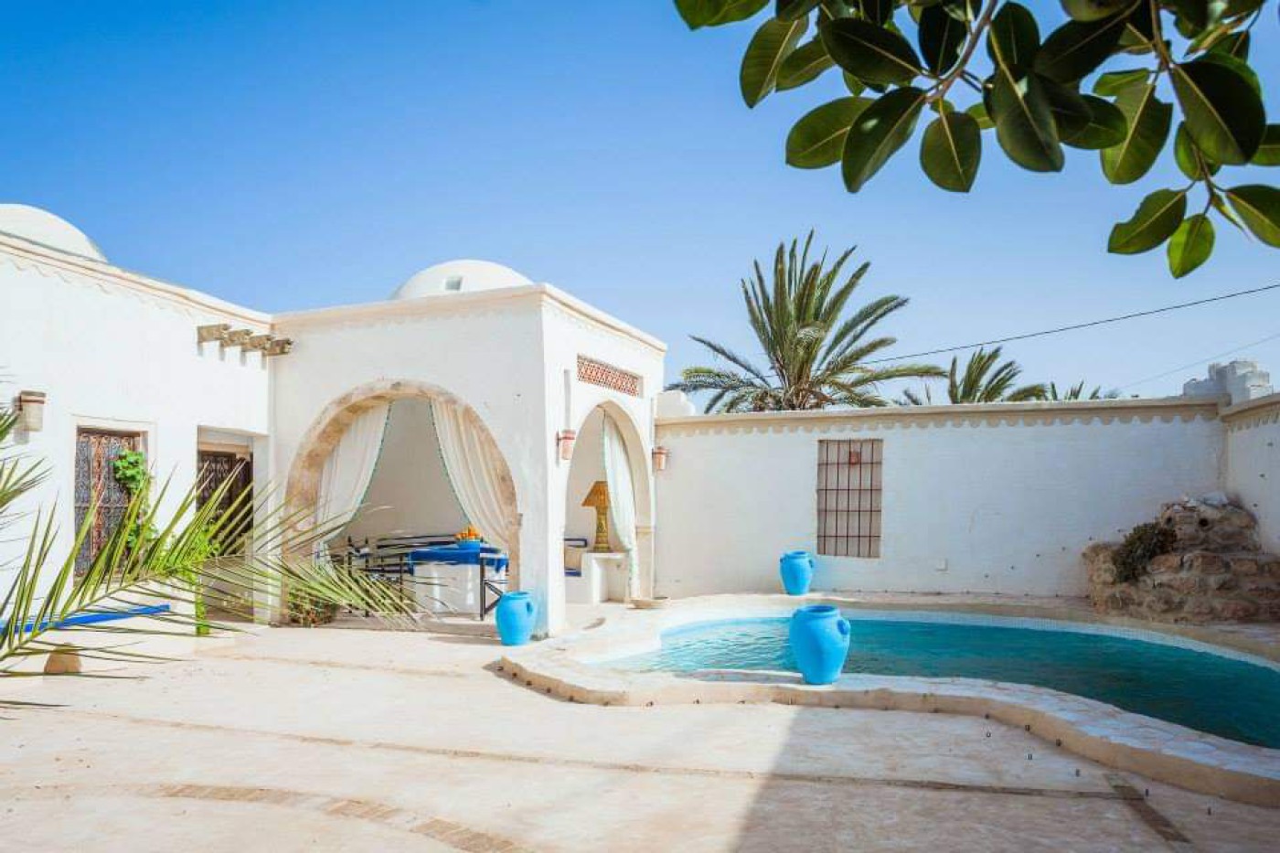 4 suites (bedroom with bathroom) each suite has a terrace overlooking the pool/garden A large living room composed of 3 parts: dining room, dedicated work place Location: bomalel / Homet souk Djerba
